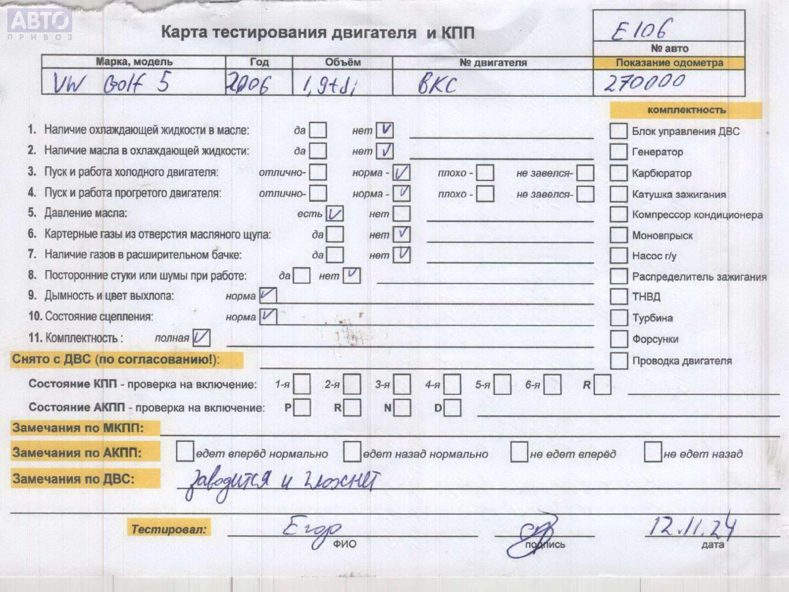 | Марка / Модель / Год: | Volkswagen Golf-5 2004 |