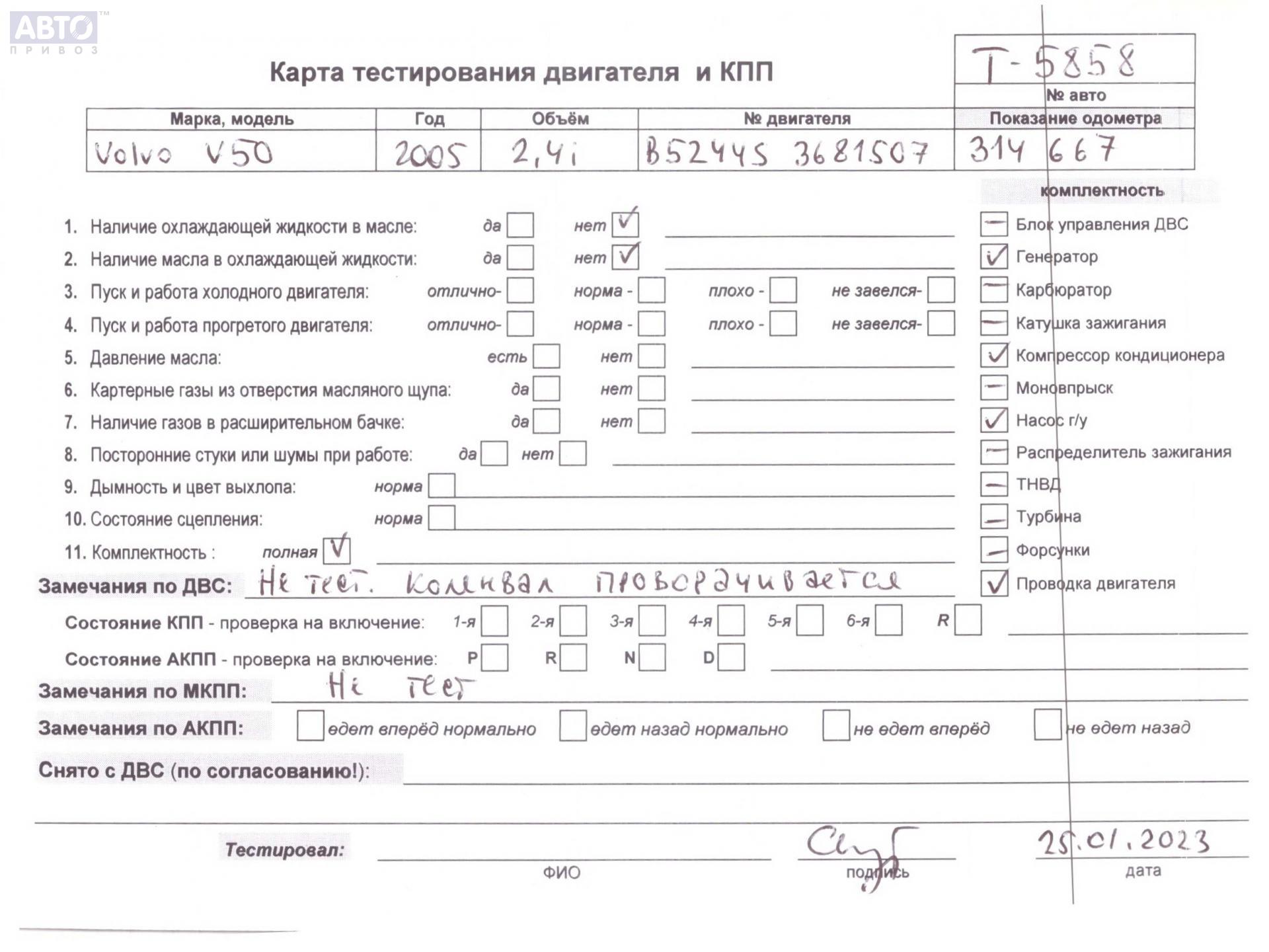 | Автомобиль / VIN: | T5858 YV1MW664952112115 |