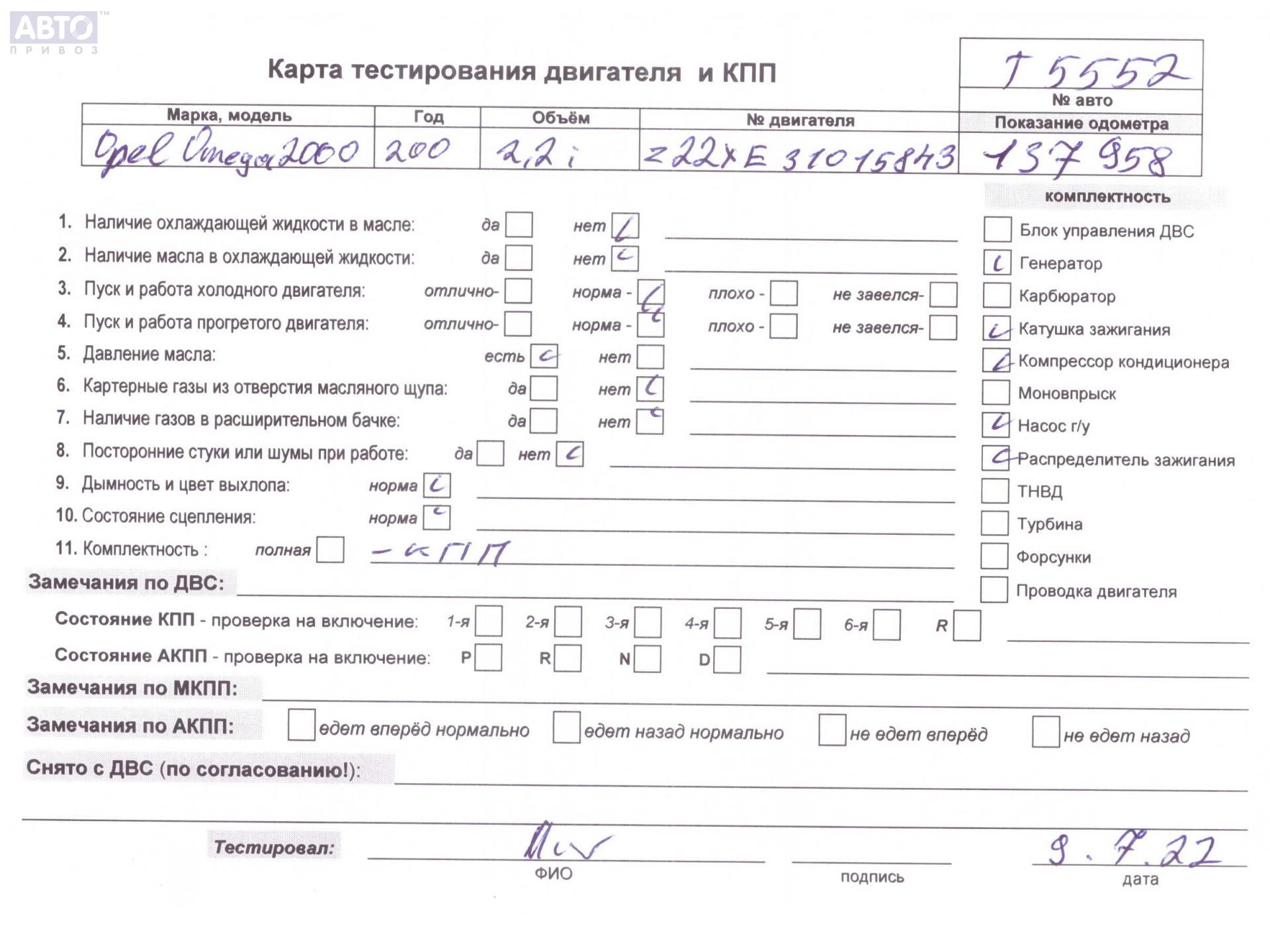| Марка / Модель / Год: | Opel Omega B (1994-2003) 2001 |