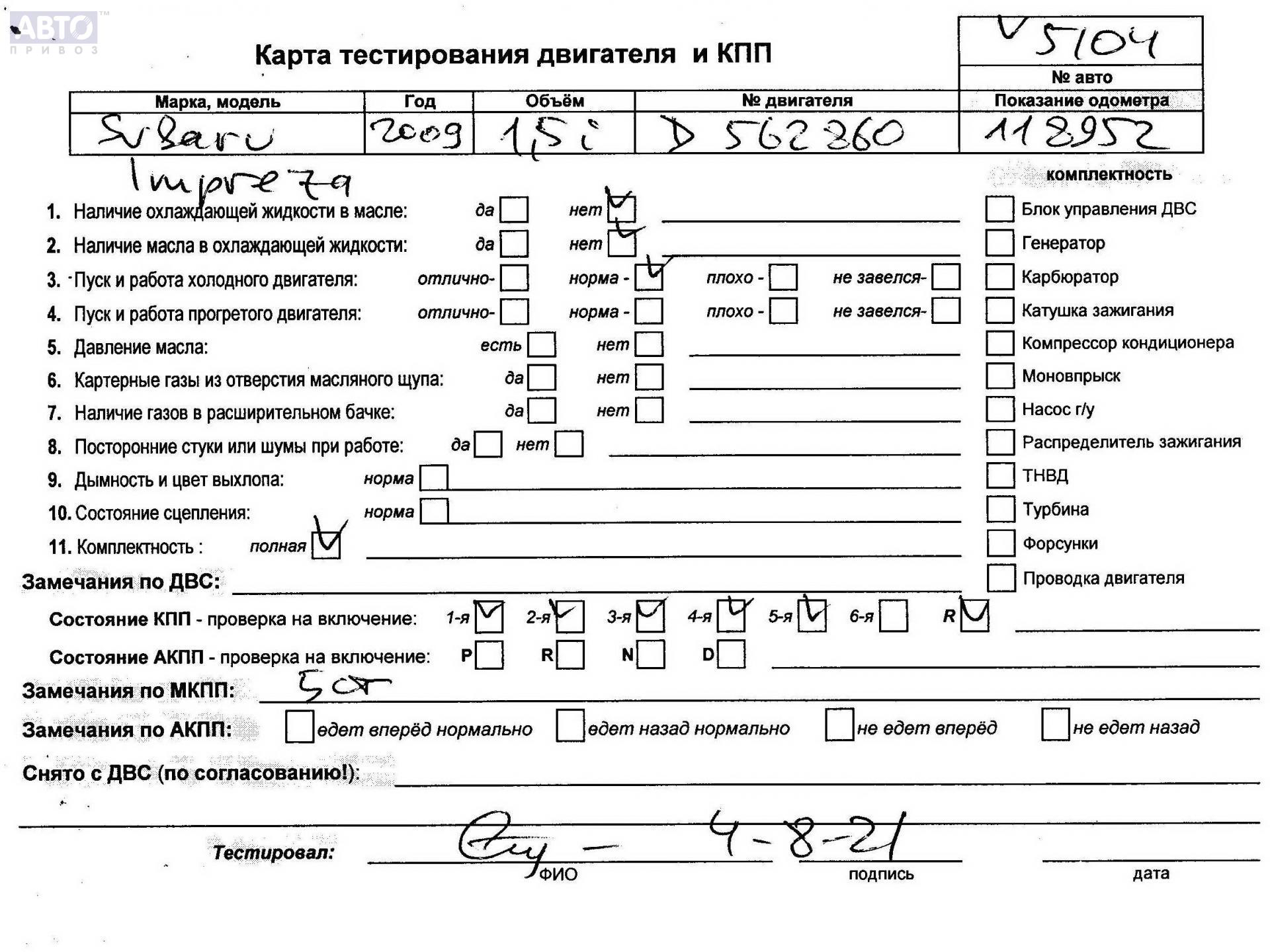 | Автомобиль / VIN: | V5104 JF1GH3KW49G027796 |