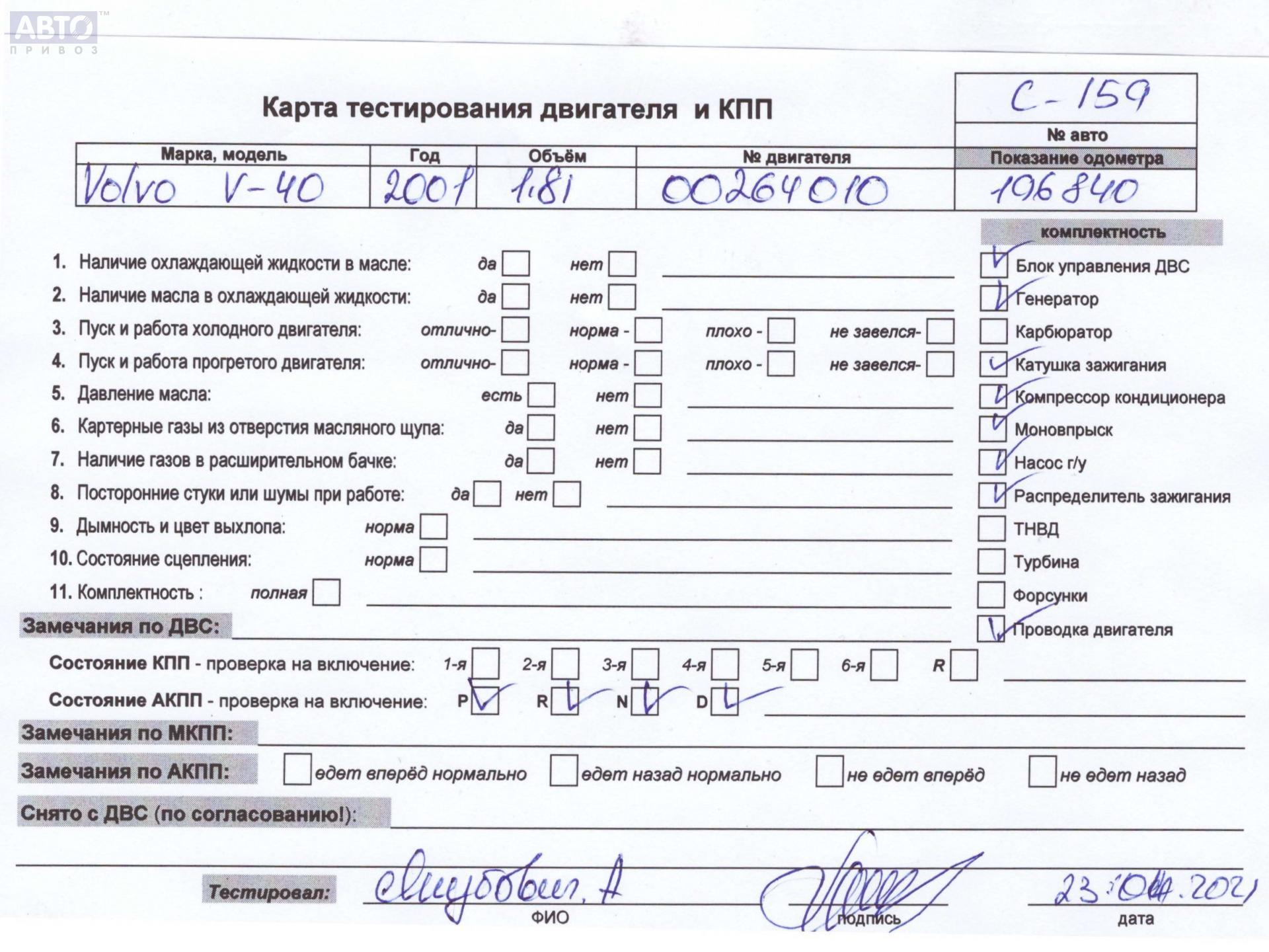 | Автомобиль / VIN: | C0159 YV1VW29691F643832 |