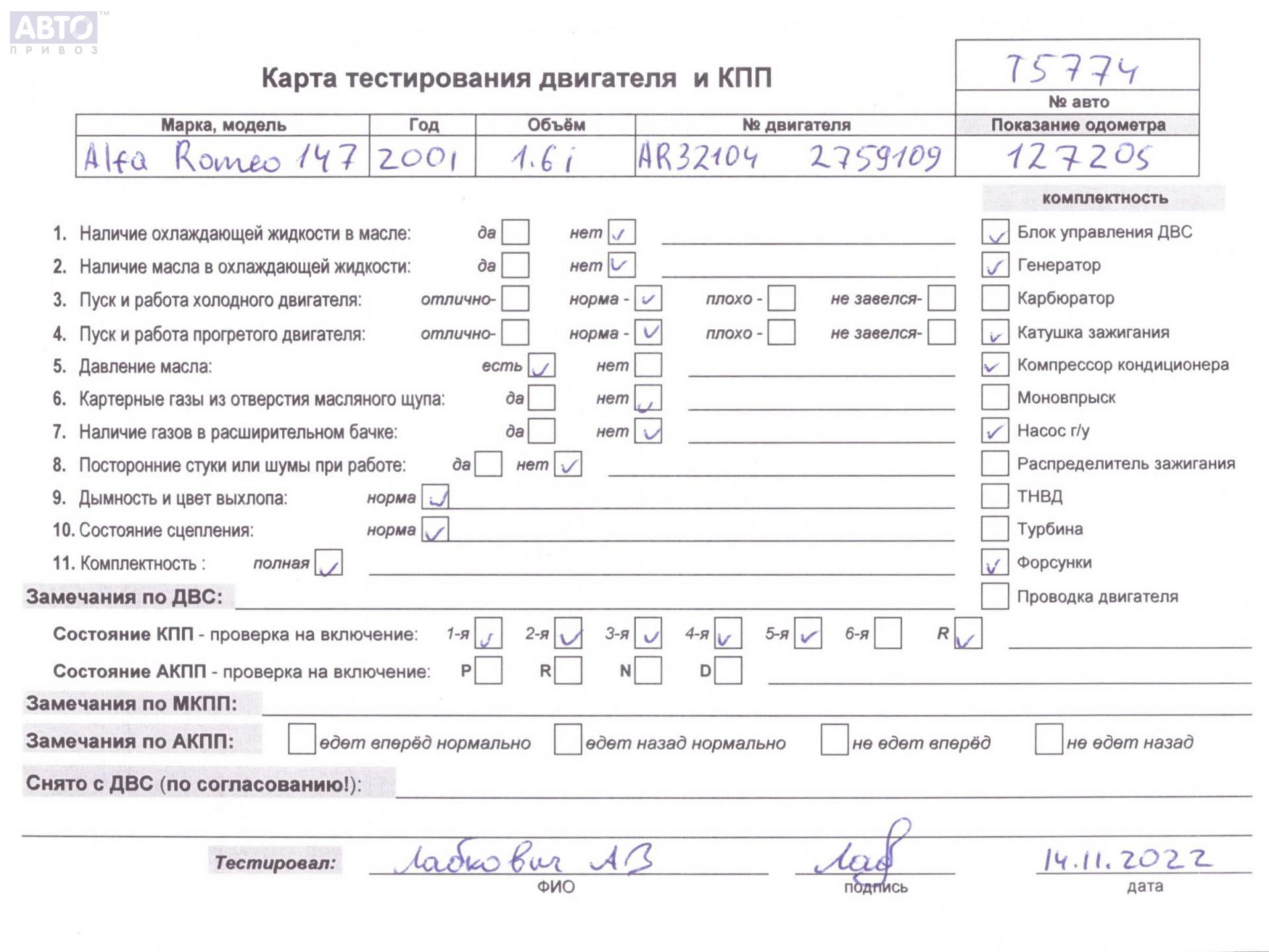 | Марка / Модель / Год: | Alfa Romeo 147 2001 |