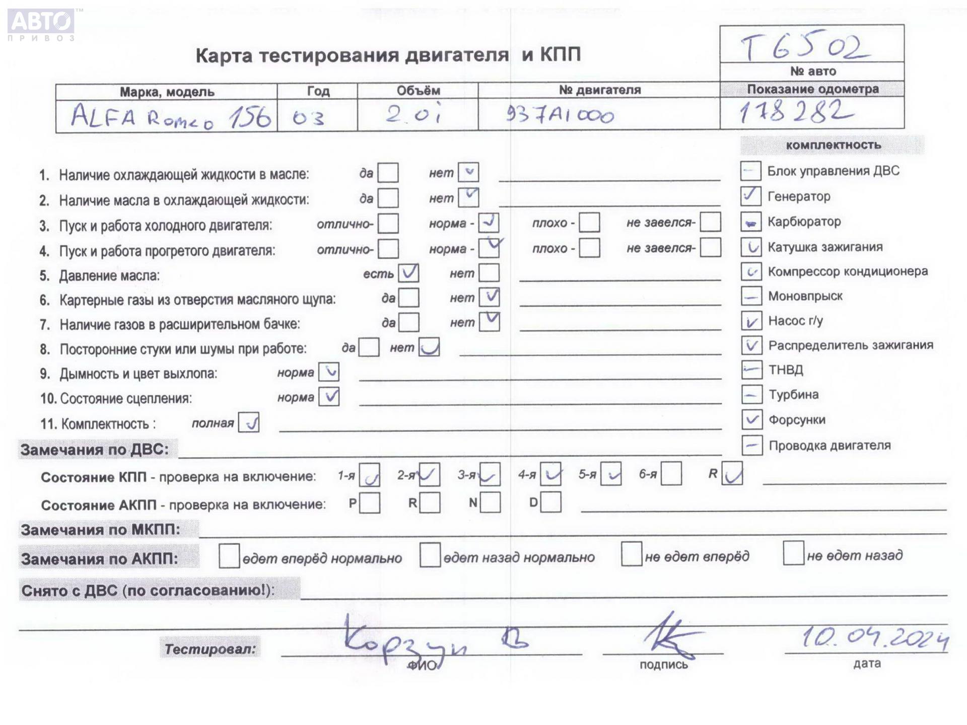 | Марка / Модель / Год: | Alfa Romeo 156 2003 |