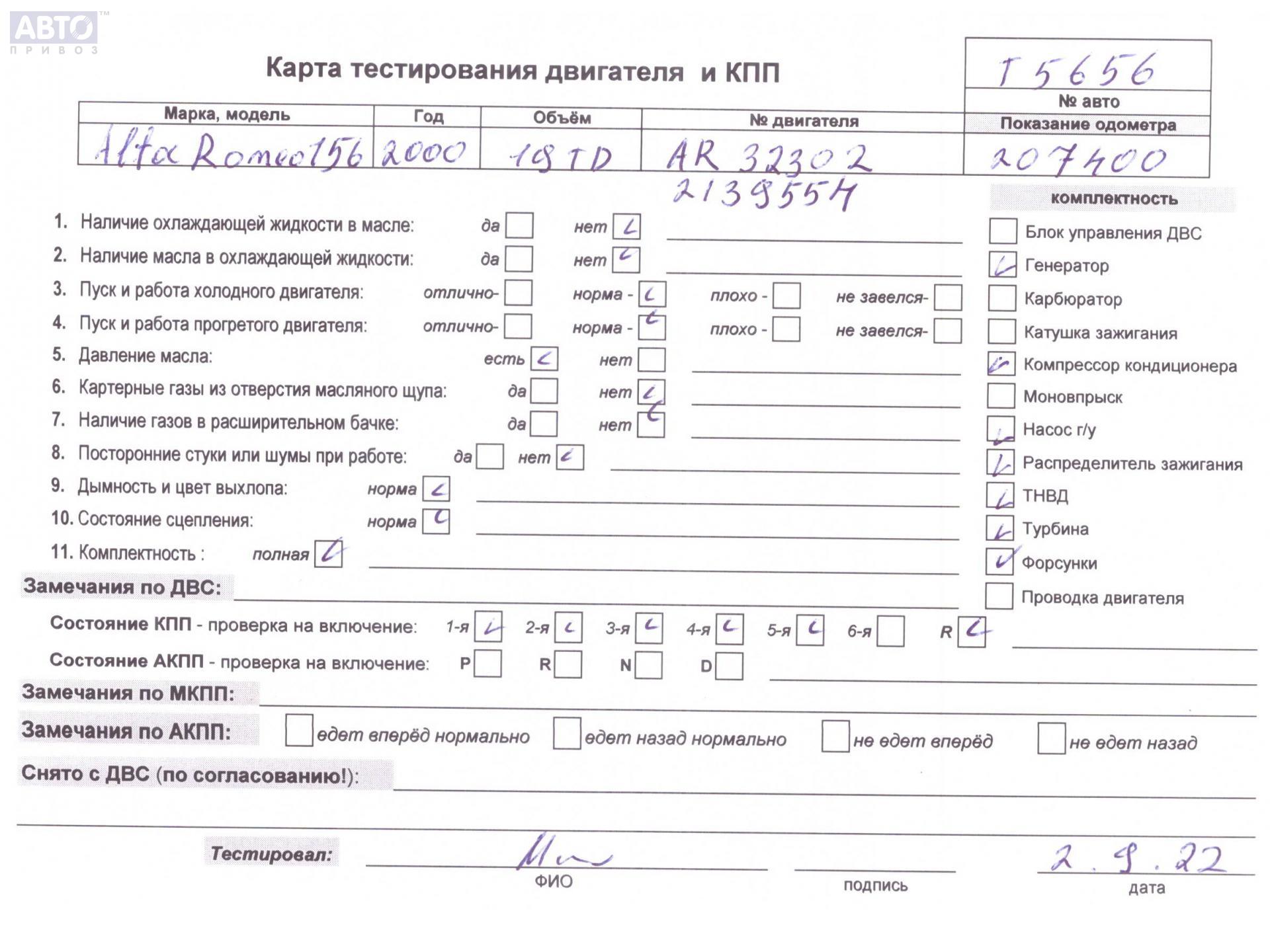 | Марка / Модель / Год: | Alfa Romeo 156 2000 |