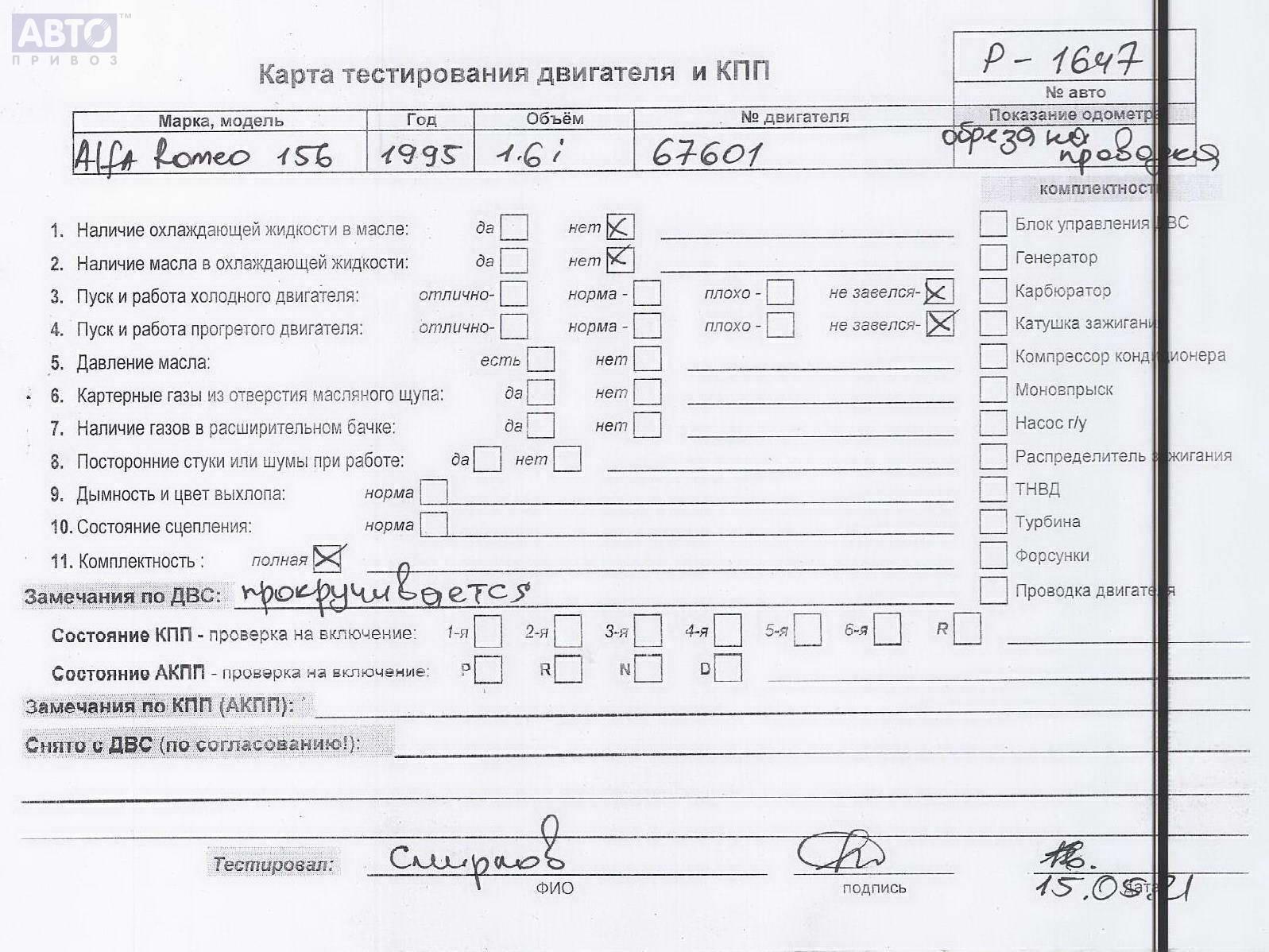 | Марка / Модель / Год: | Alfa Romeo 156 1998 |