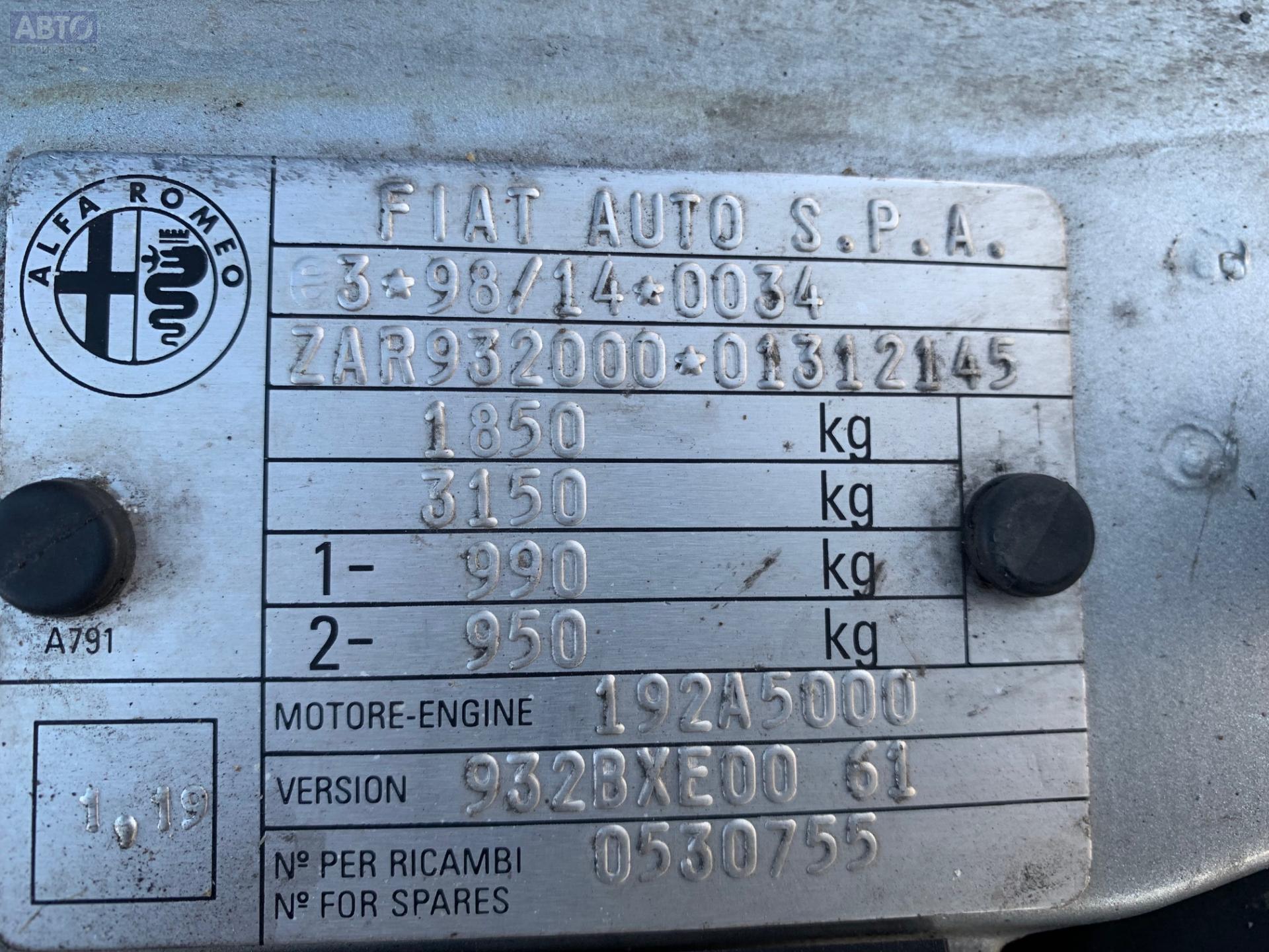 | Автомобиль / VIN: | T1997 ZAR93200001312145 |