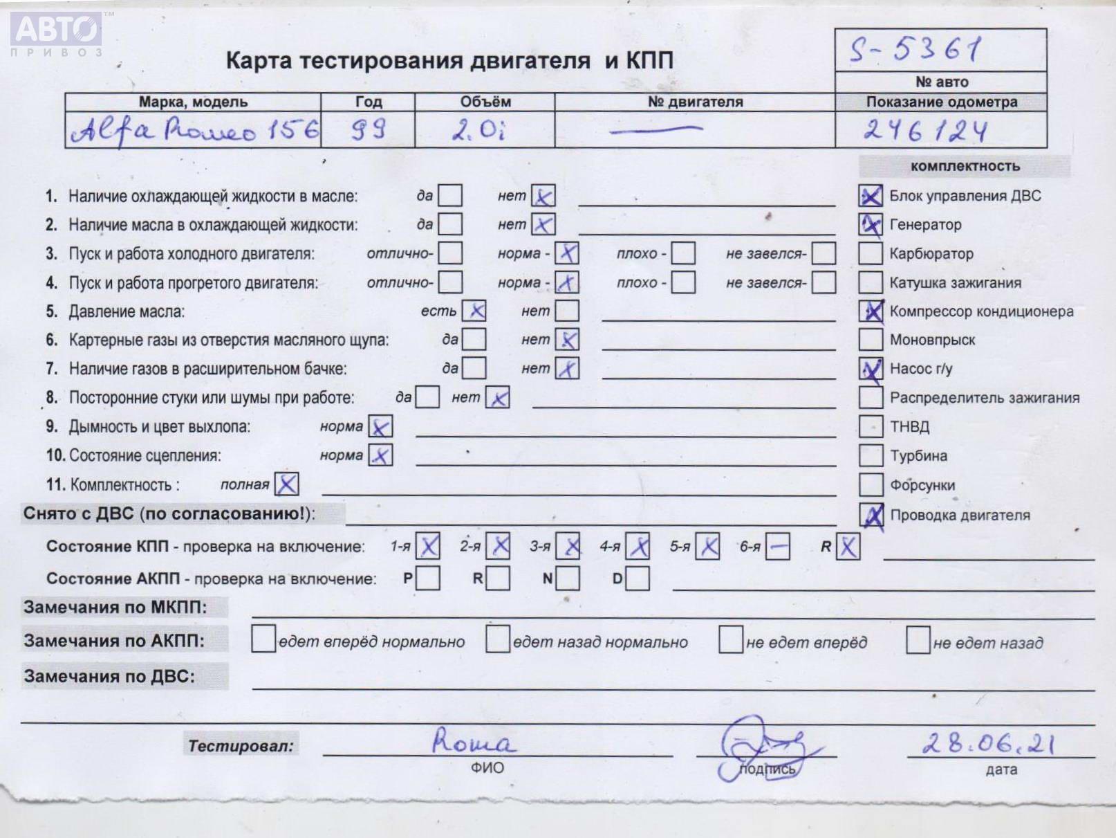 | Марка / Модель / Год: | Alfa Romeo 156 1999 |