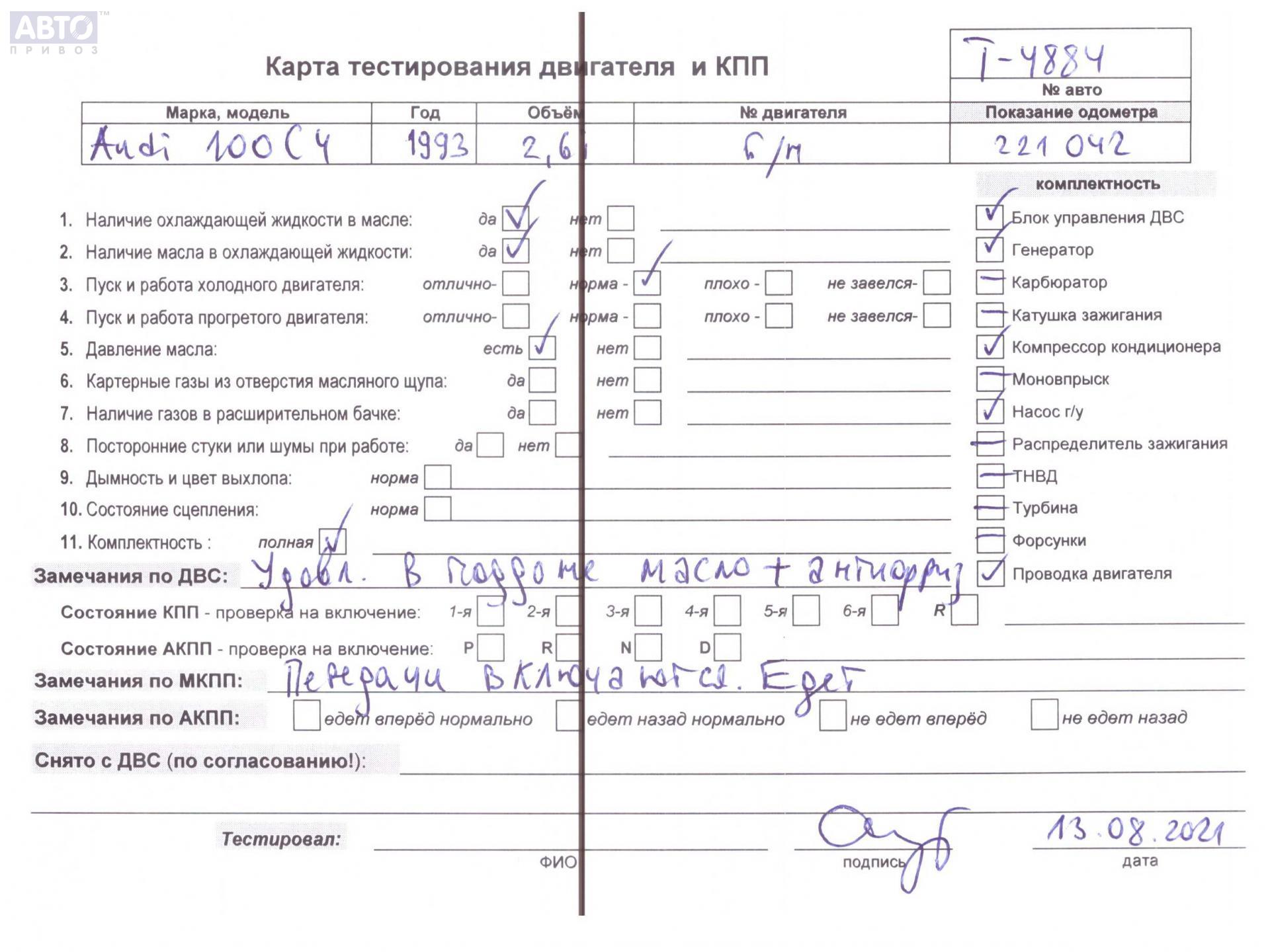 | Марка / Модель / Год: | Audi 100 C4 (1991-1994) 1993 |