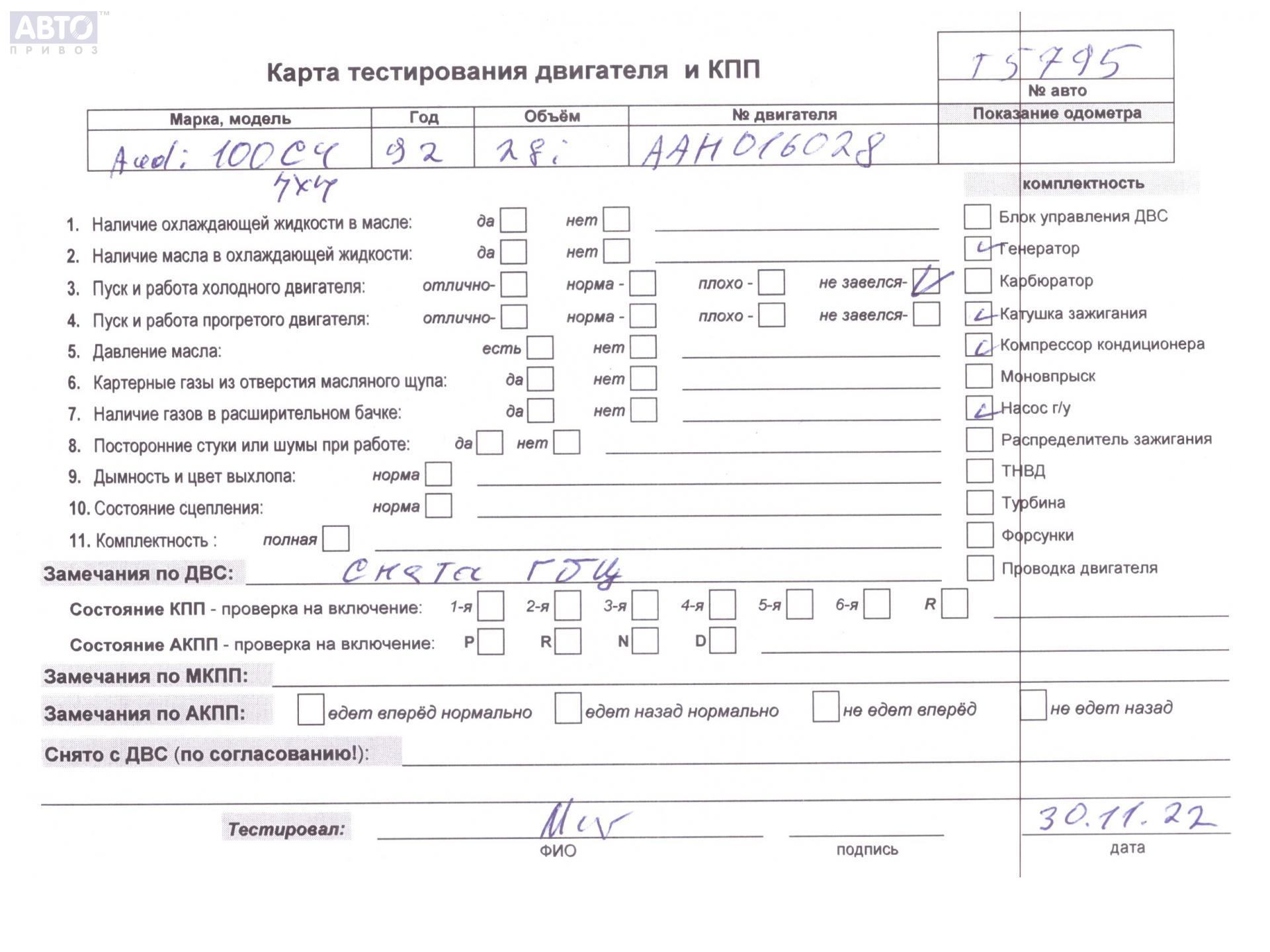 | Марка / Модель / Год: | Audi 100 C4 (1991-1994) 1992 |