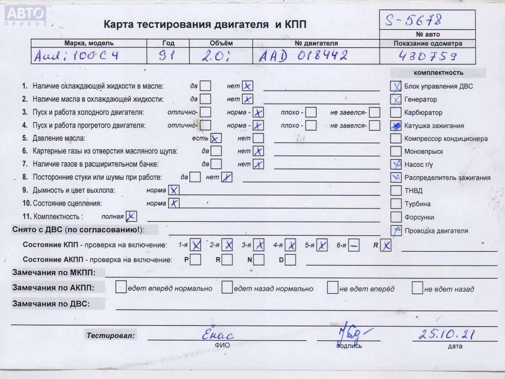 | Марка / Модель / Год: | Audi 100 C4 (1991-1994) 1991 |