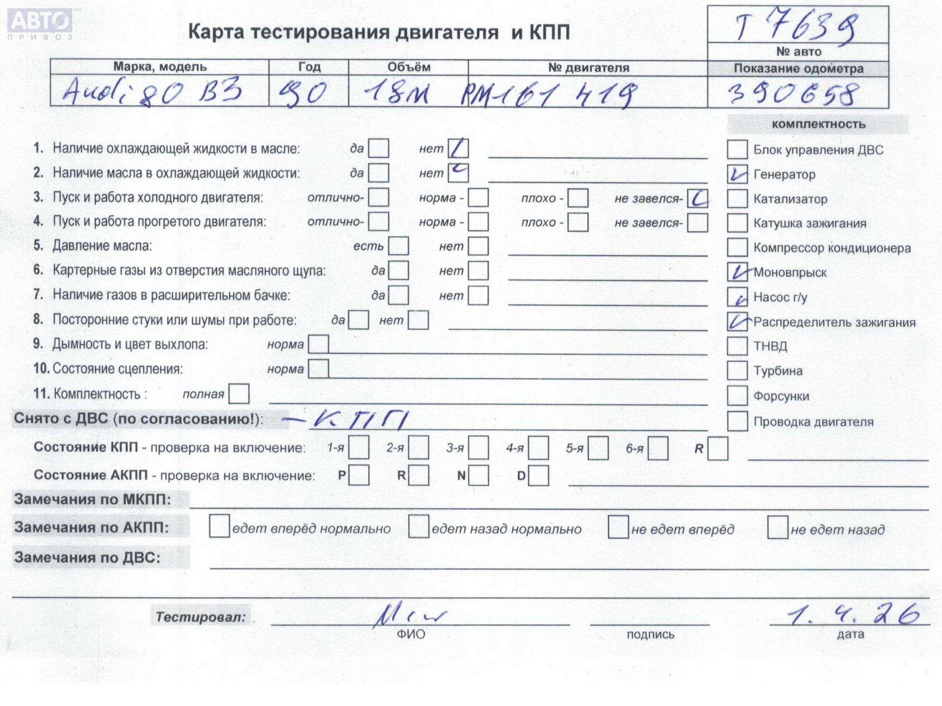 | Марка / Модель / Год: | Audi 80 B3 (1987-1992) 1991 |