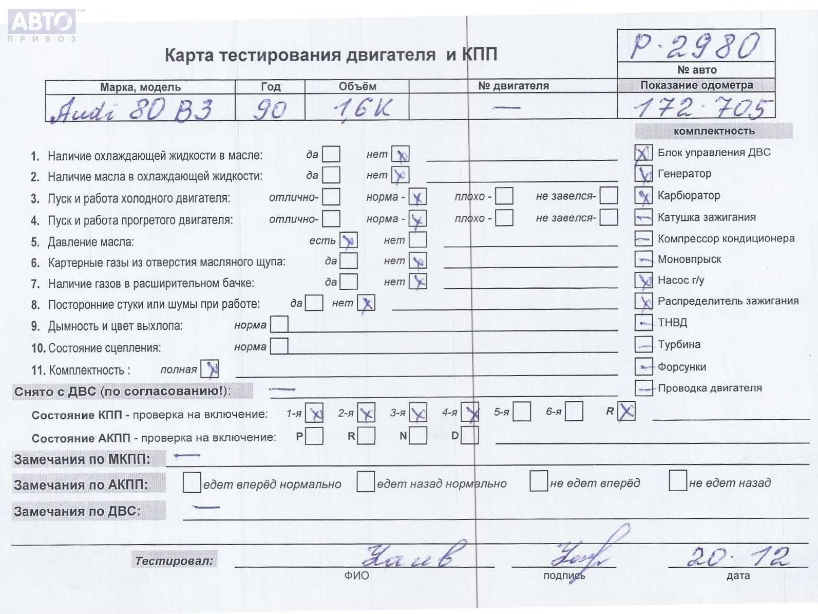 | Марка / Модель / Год: | Audi 80 B3 (1987-1992) 1990 |