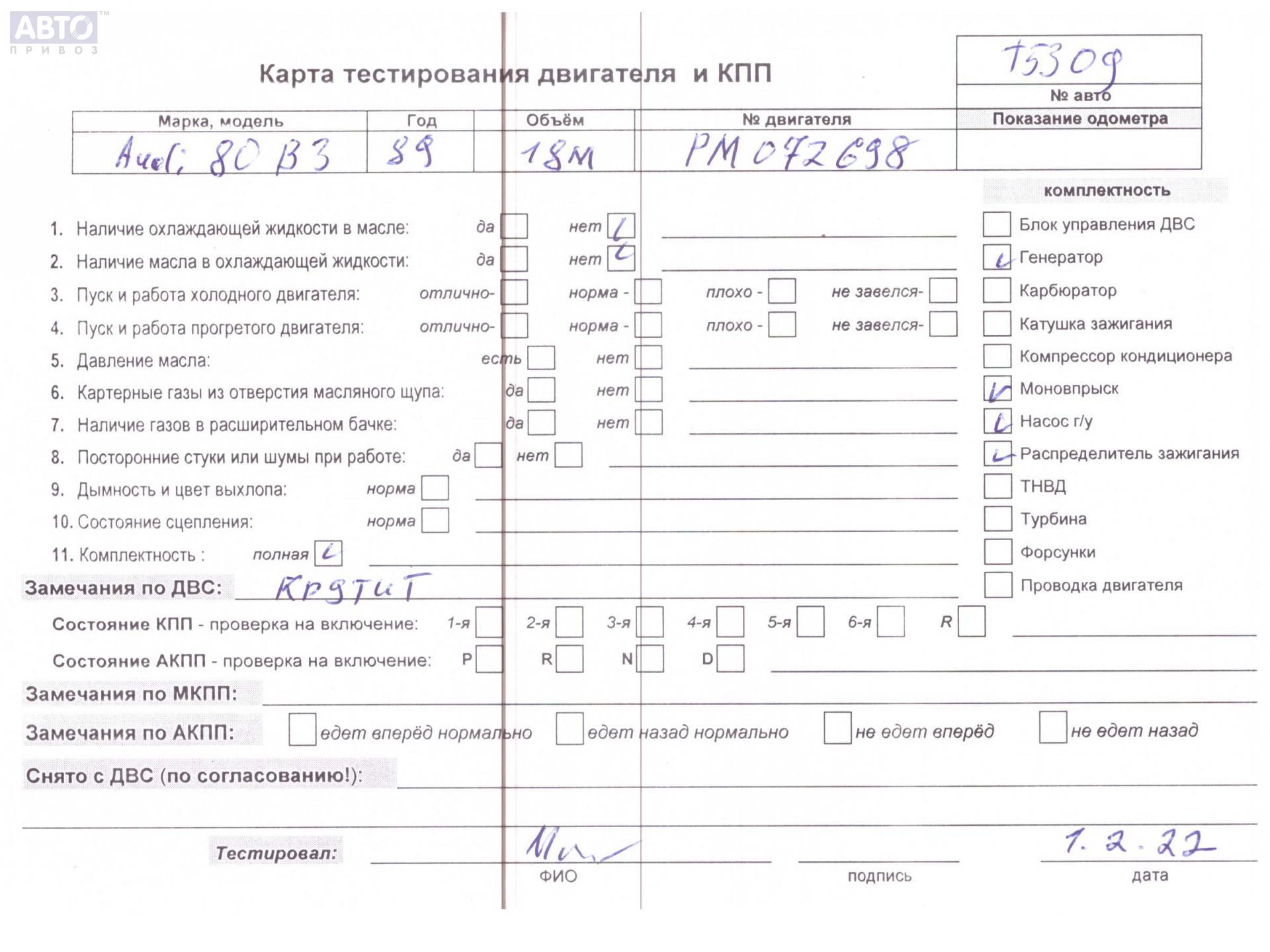 | Марка / Модель / Год: | Audi 80 B3 (1987-1992) 1989 |
