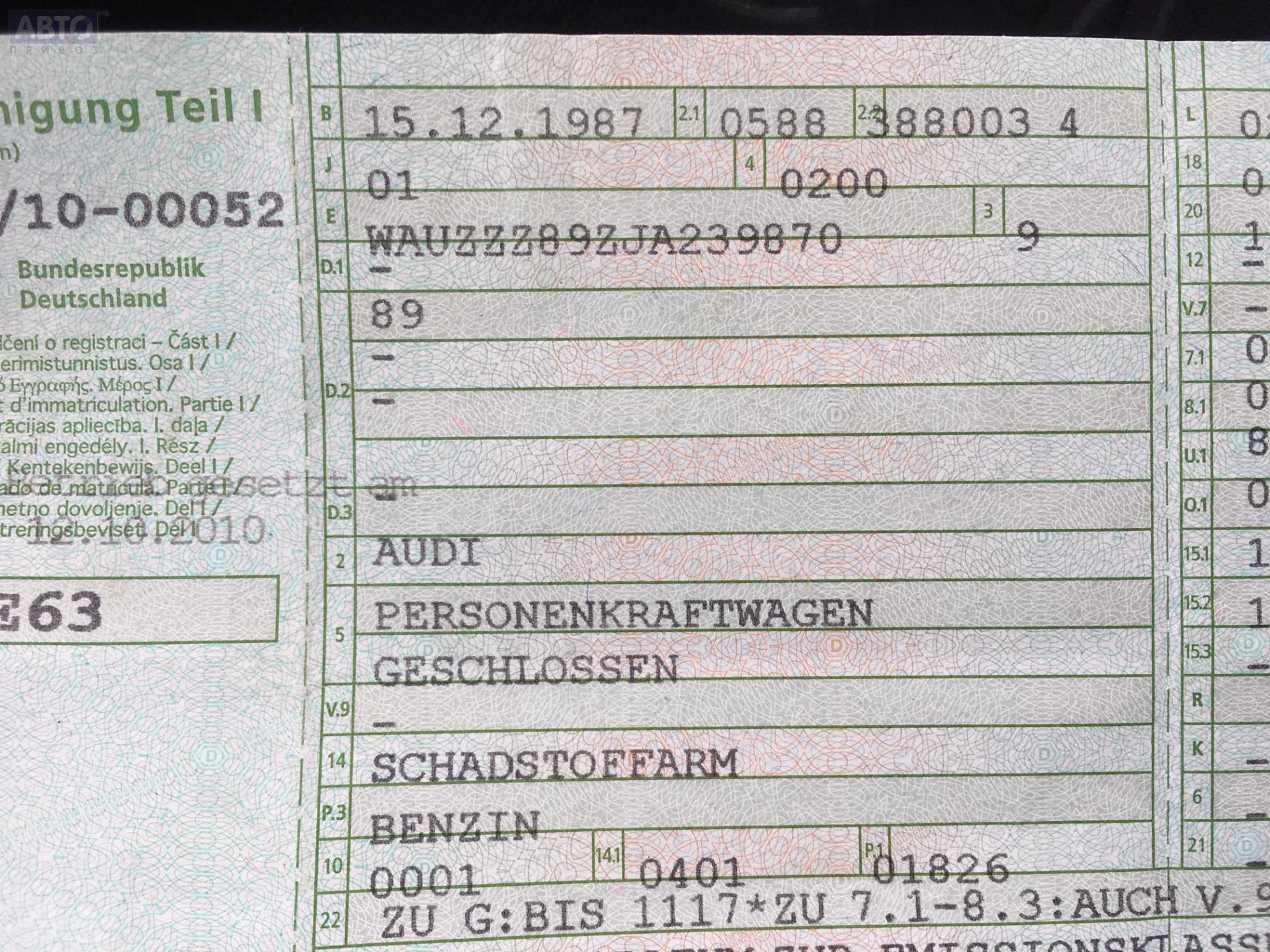 | Марка / Модель / Год: | Audi 80 B3 (1987-1992) 1987 |
