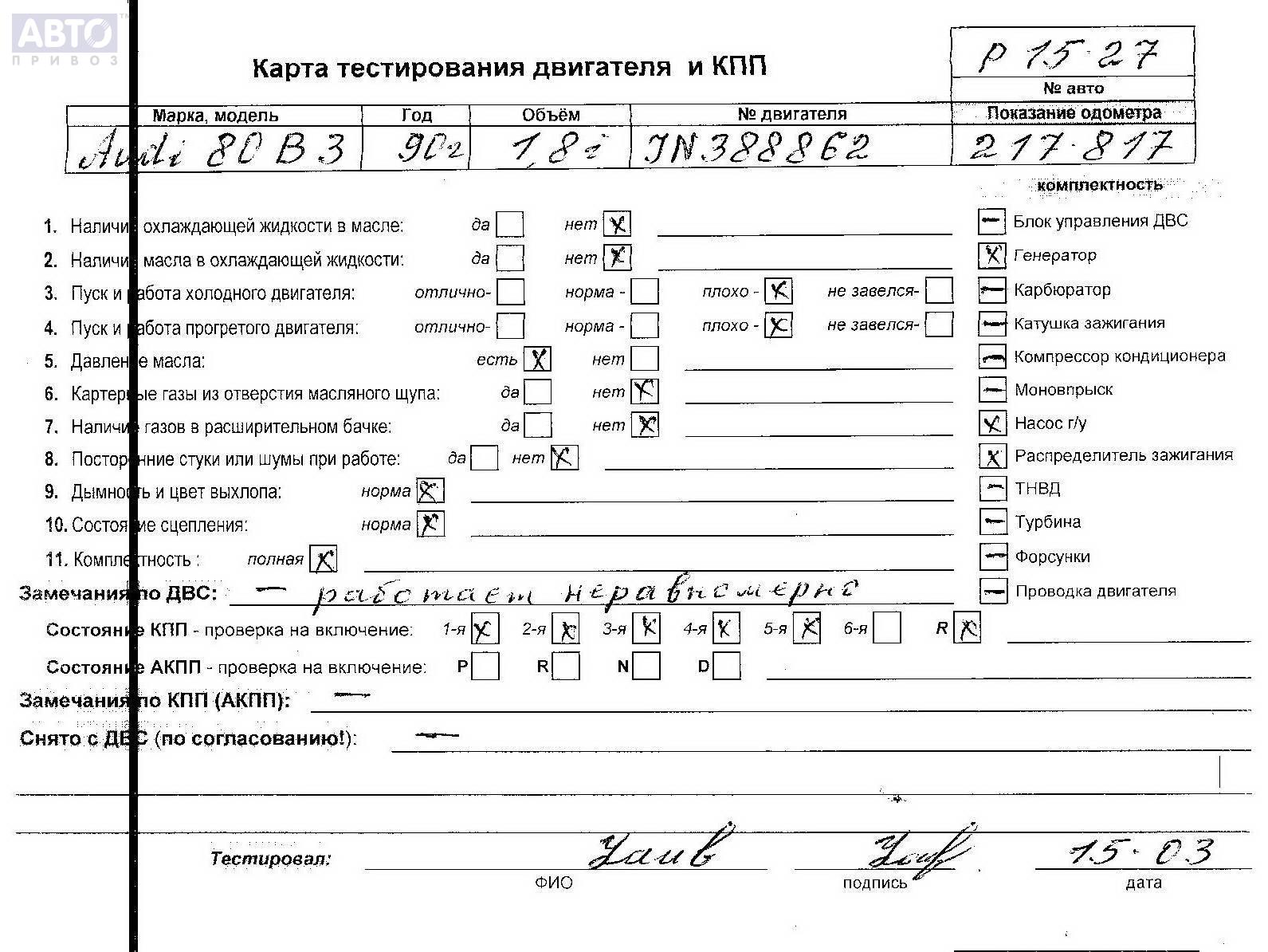 | Марка / Модель / Год: | Audi 80 B3 (1987-1992) 1990 |