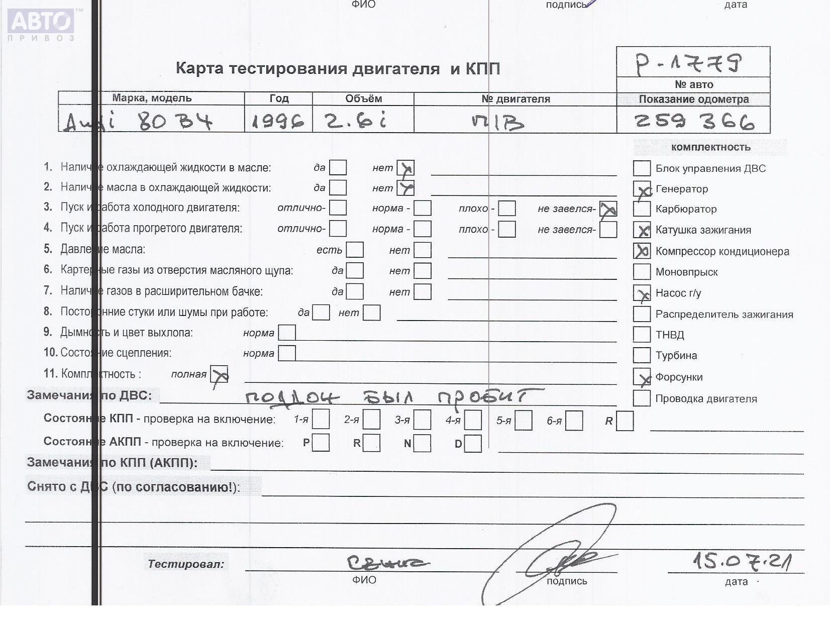 | Марка / Модель / Год: | Audi 80 B4 (1991-1996) 1996 |
