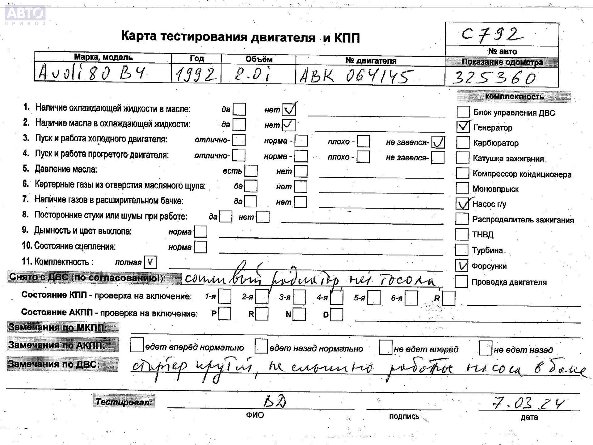 | Марка / Модель / Год: | Audi 80 B4 (1991-1996) 1992 |