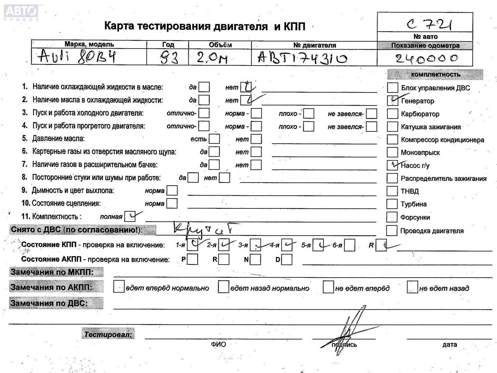 | Марка / Модель / Год: | Audi 80 B4 (1991-1996) 1993 |
