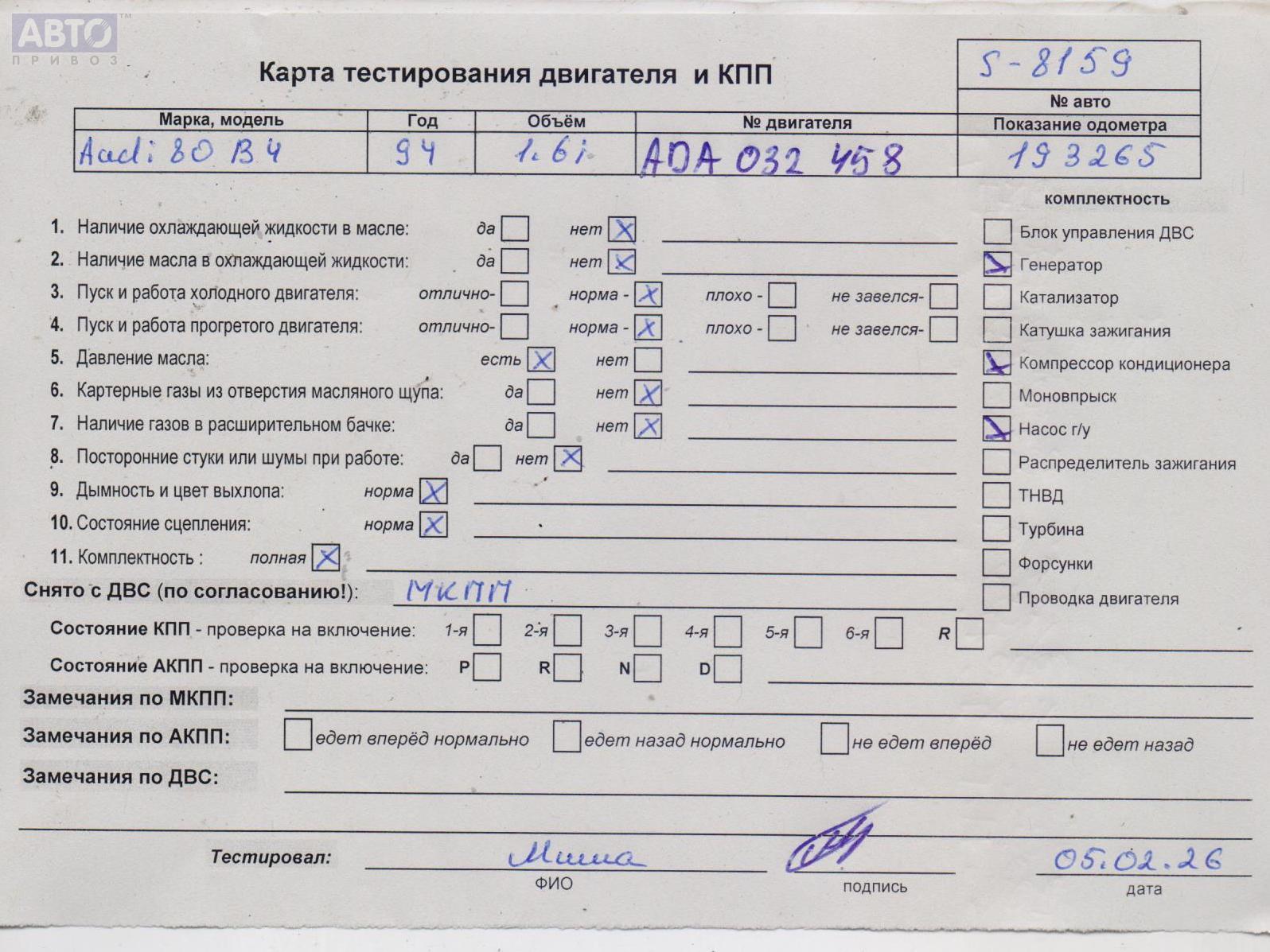 | Марка / Модель / Год: | Audi 80 B4 (1991-1996) 1994 |