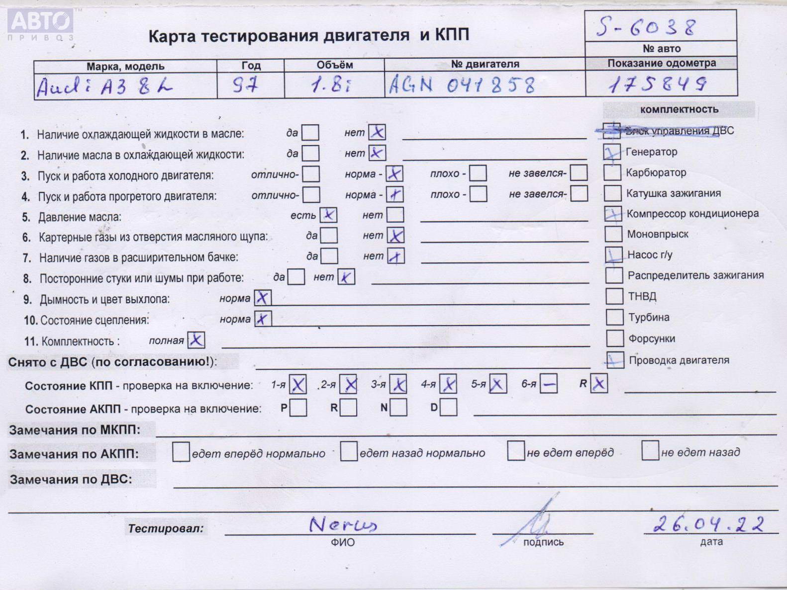 | Автомобиль / VIN: | S6038 WAUZZZ8LZVA083480 |