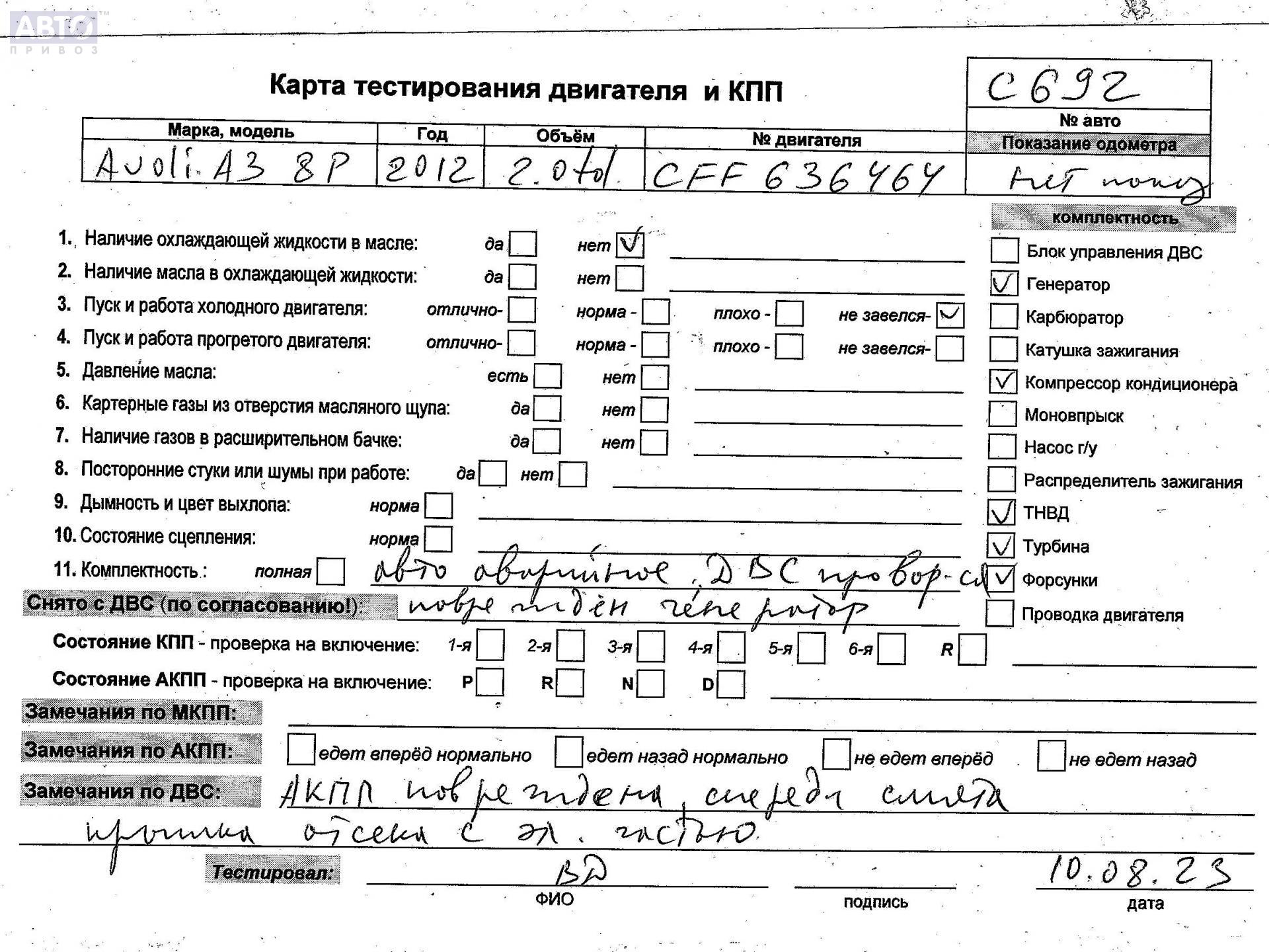 | Автомобиль / VIN: | C0692 WAUZZZ8P6DA015358 |