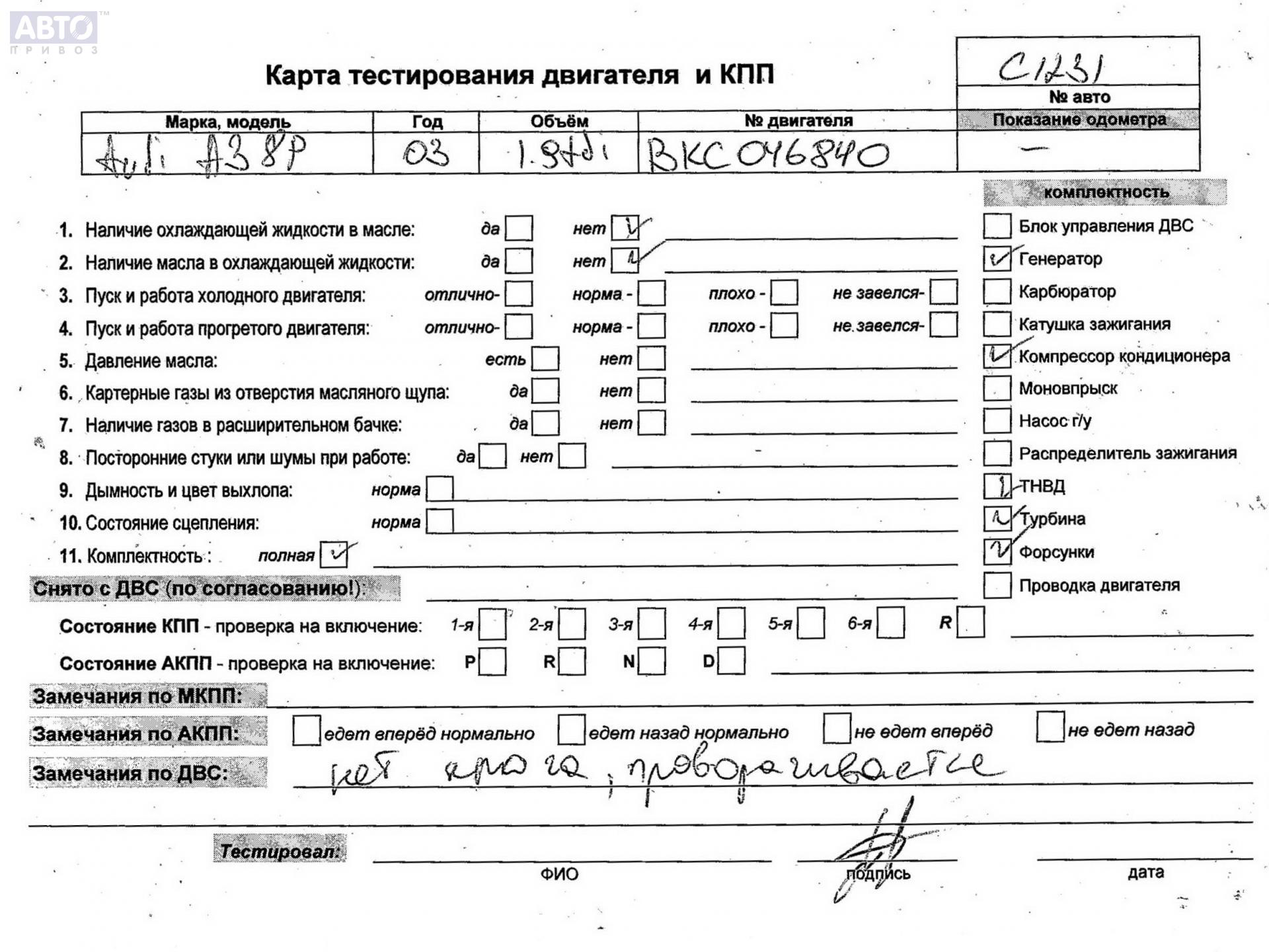 | Марка / Модель / Год: | Audi A3 8P (2003-2012) 2003 |