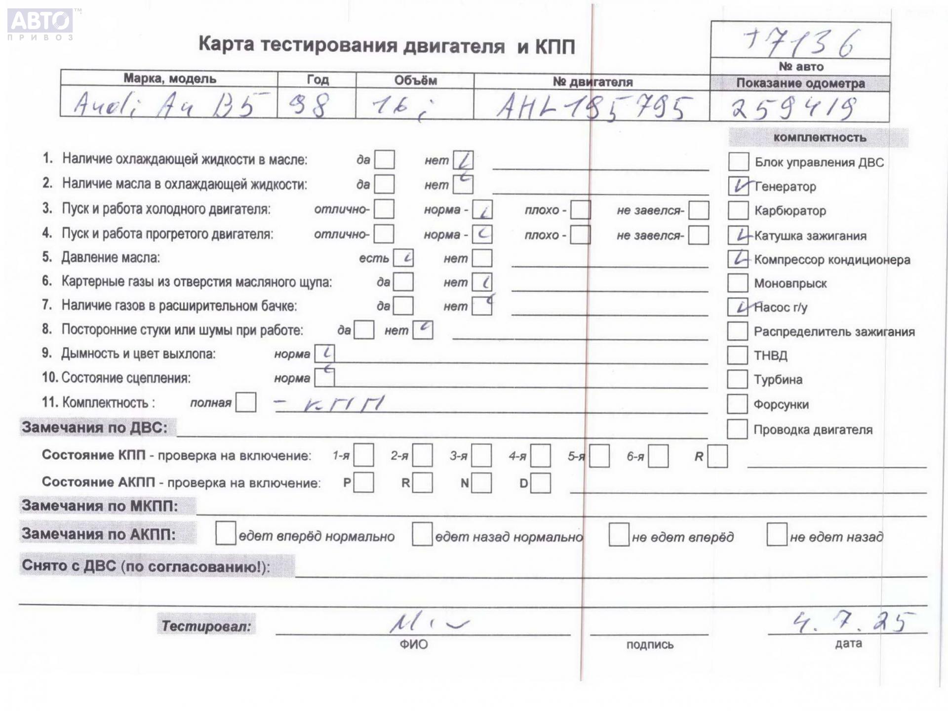 | Марка / Модель / Год: | Audi A4 B5 (1994-2001) 1998 |