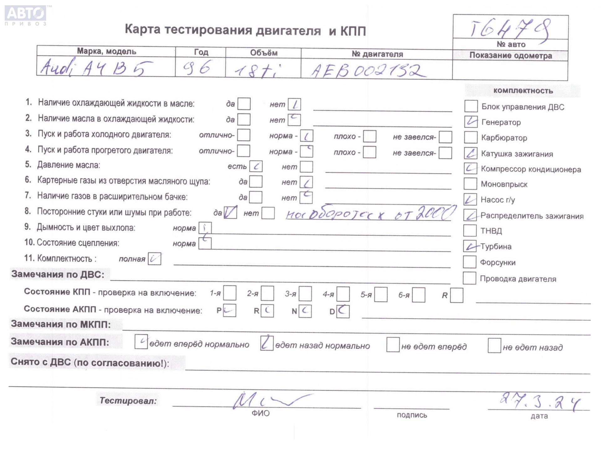 | Автомобиль / VIN: | T6479 WAUZZZ8DZTA253343 |