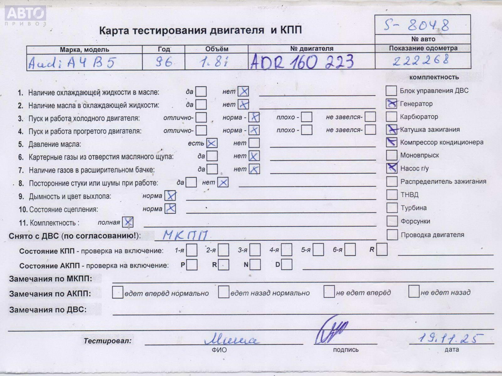 | Марка / Модель / Год: | Audi A4 B5 (1994-2001) 1996 |