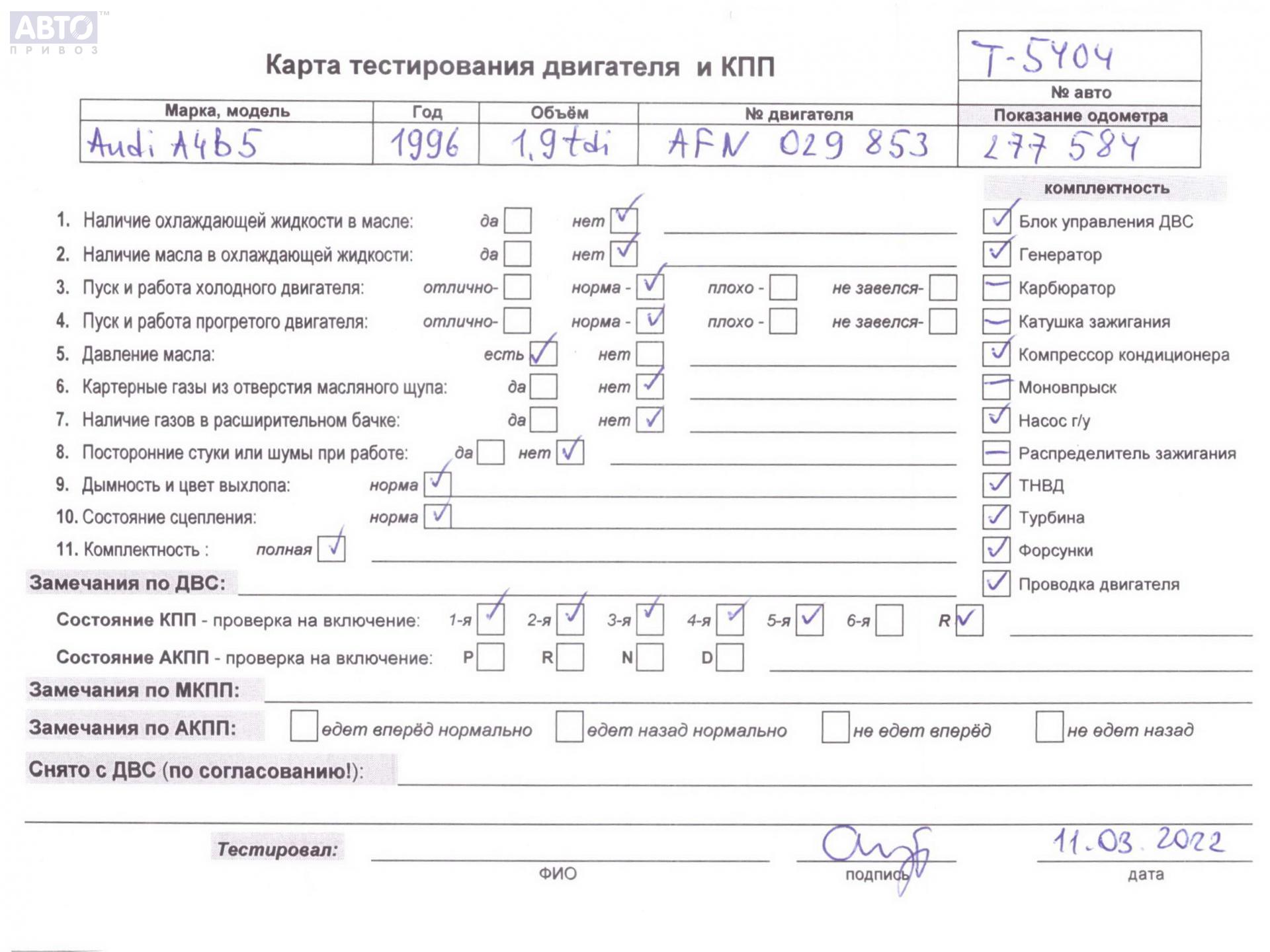 | Автомобиль / VIN: | T5404 WAUZZZ8DZTA252618 |