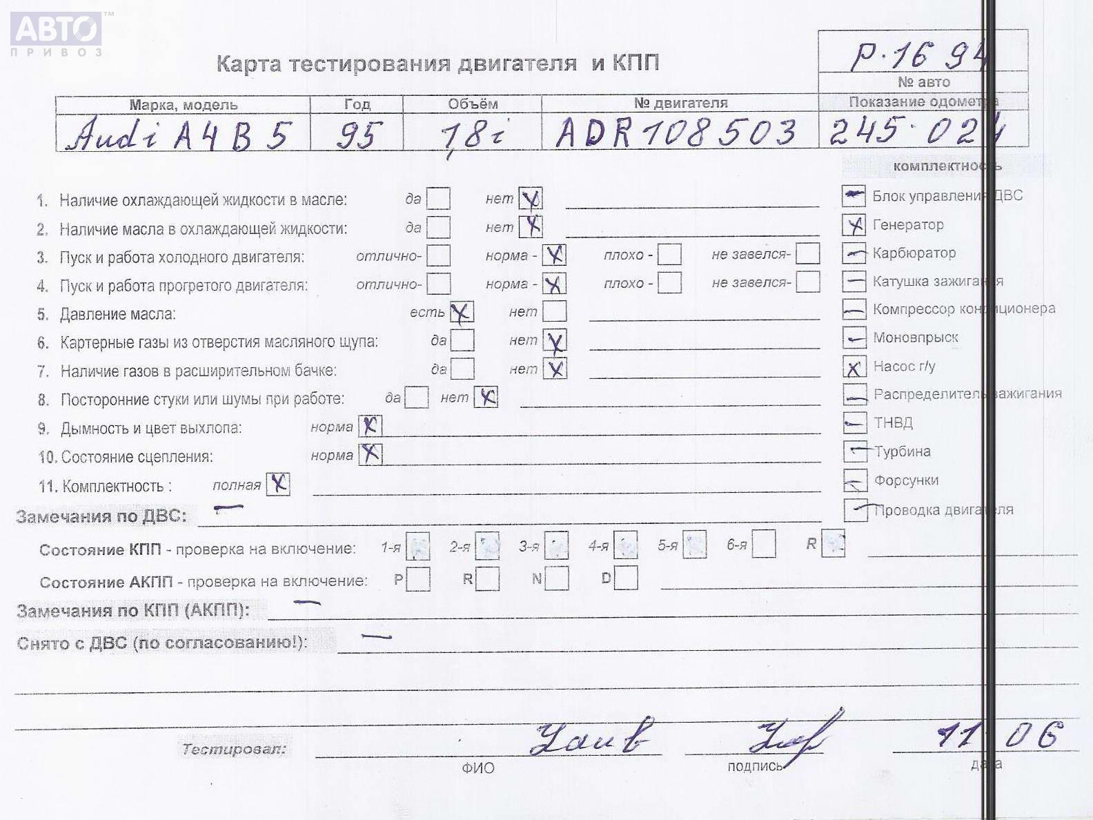 | Автомобиль / VIN: | P1694 WAUZZZ8DZTA142195 |