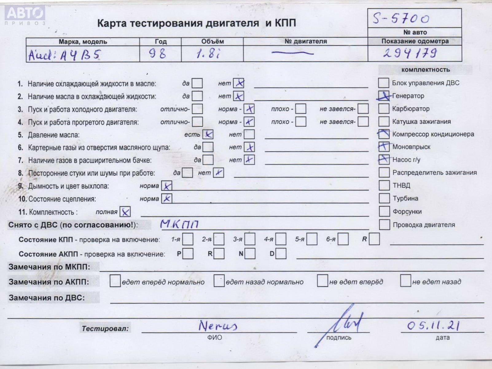 | Марка / Модель / Год: | Audi A4 B5 (1994-2001) 1998 |