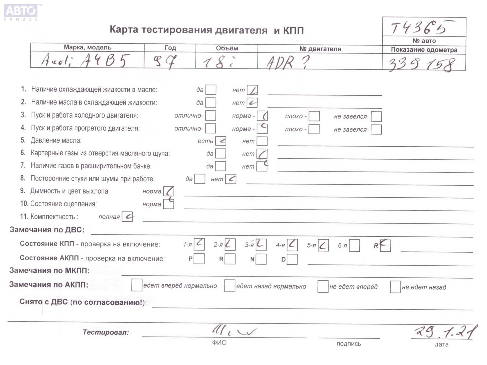 | Марка / Модель / Год: | Audi A4 B5 (1994-2001) 1998 |