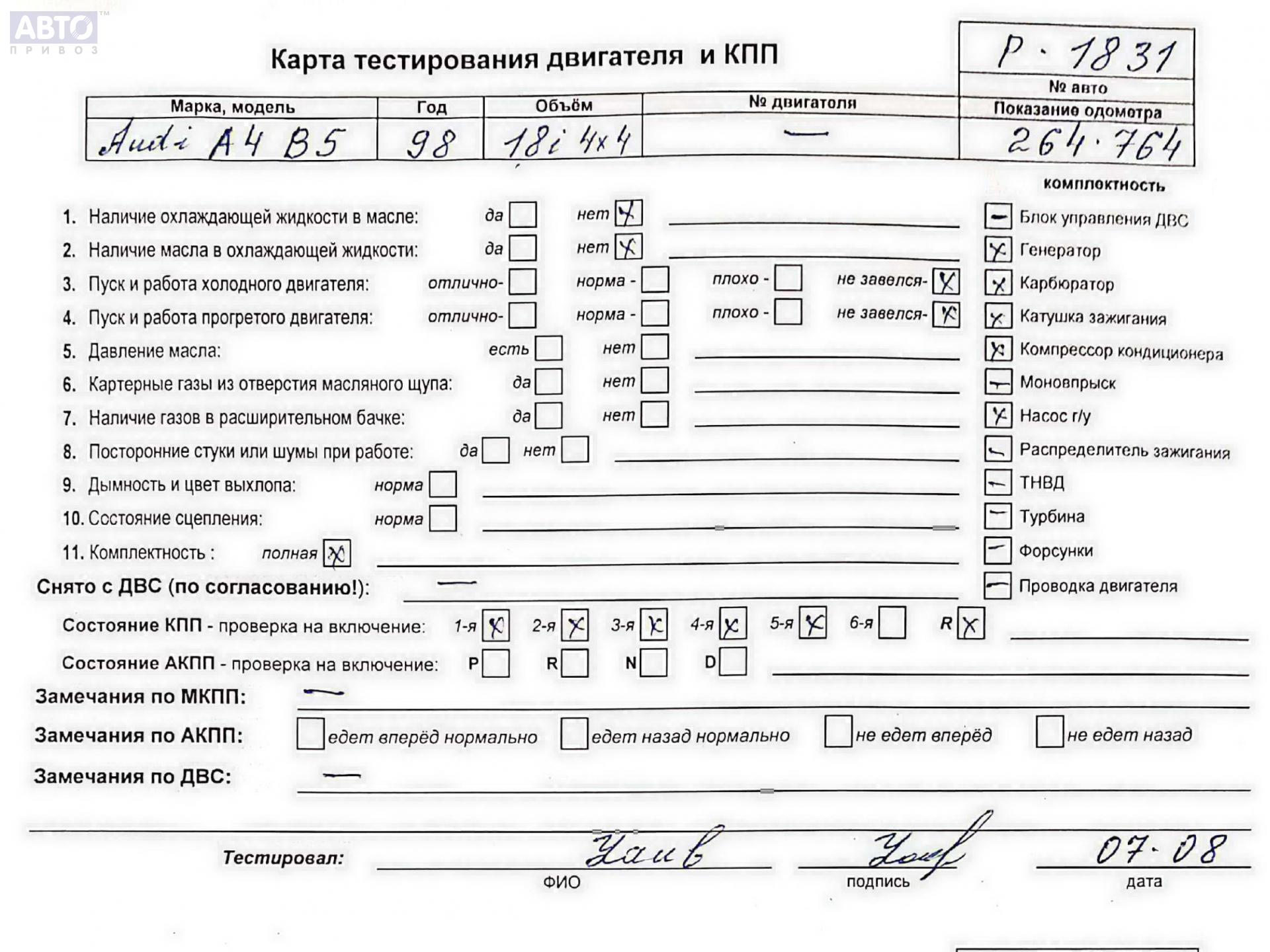 | Марка / Модель / Год: | Audi A4 B5 (1994-2001) 1998 |