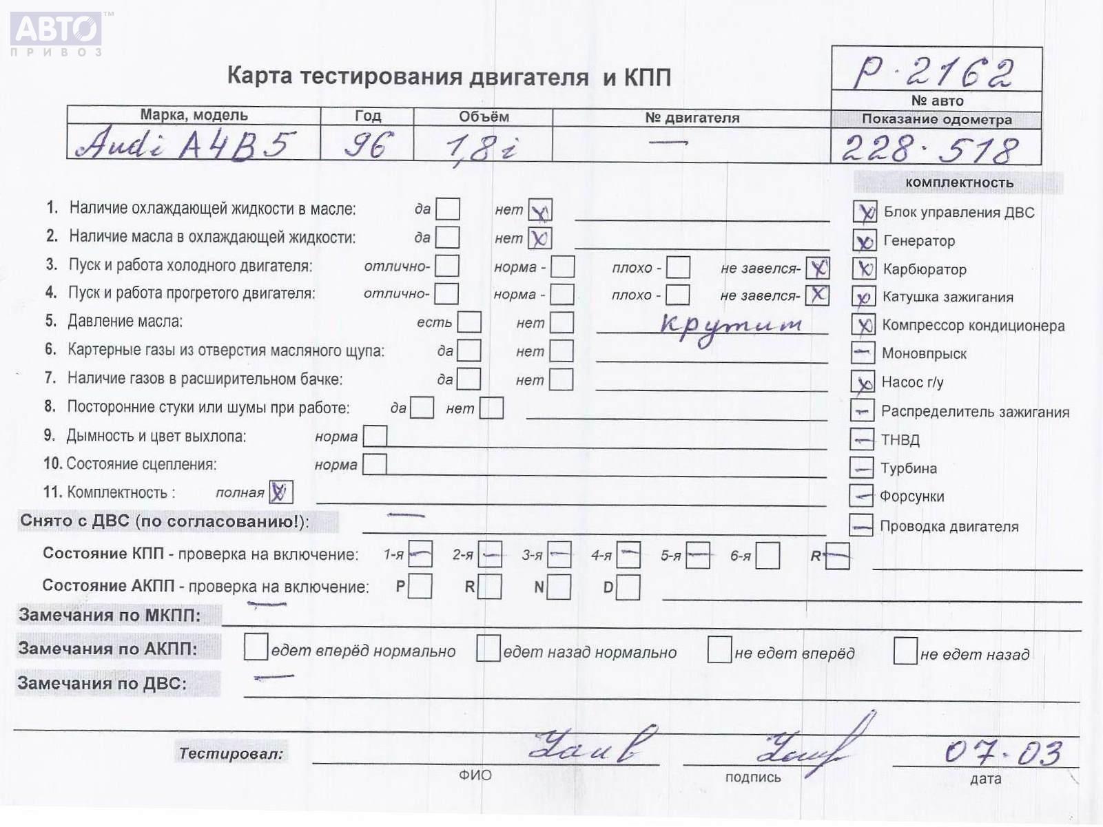 | Марка / Модель / Год: | Audi A4 B5 (1994-2001) 1996 |