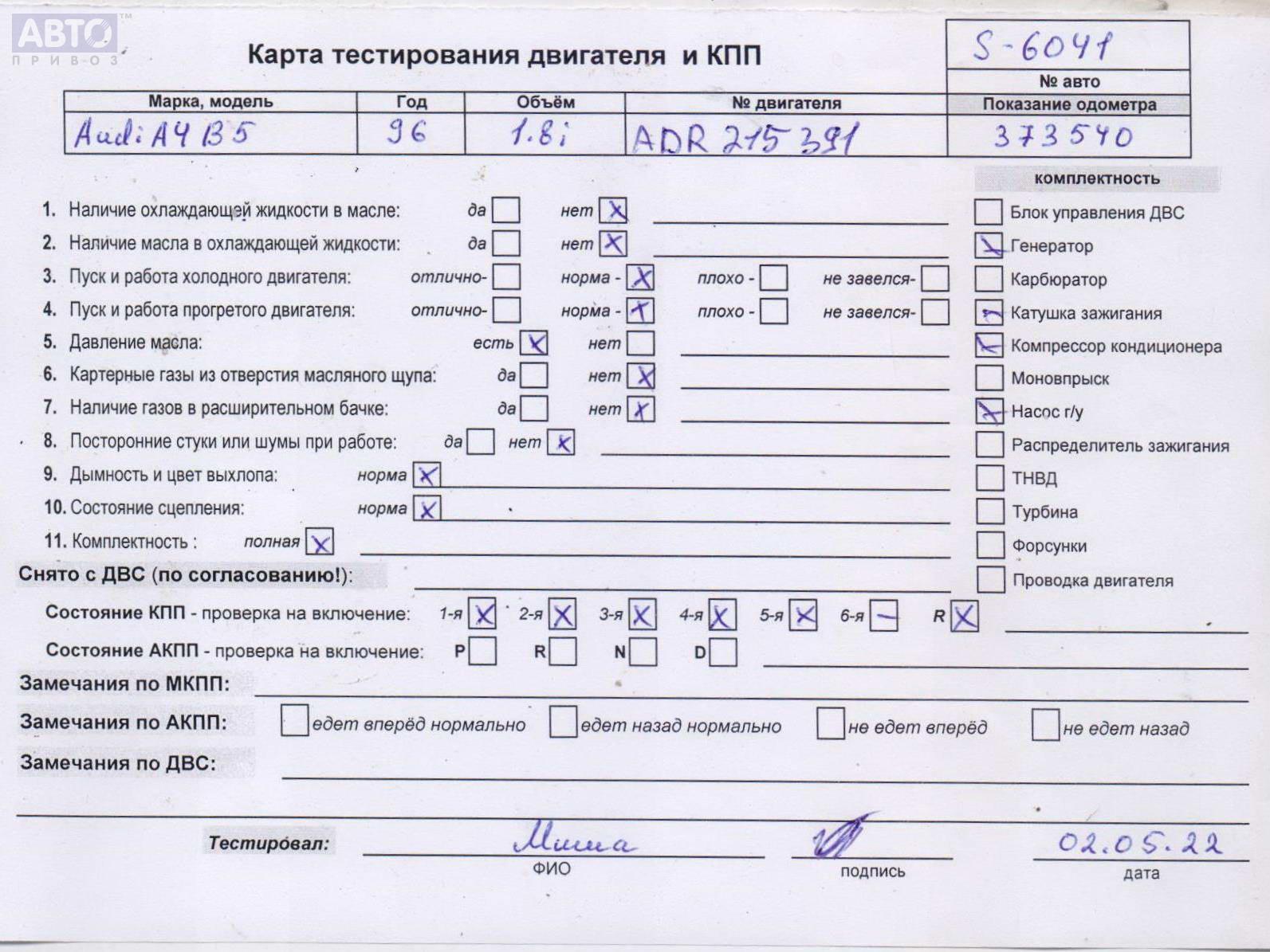 | Автомобиль / VIN: | S6041 WAUZZZ8DZVA079745 |
