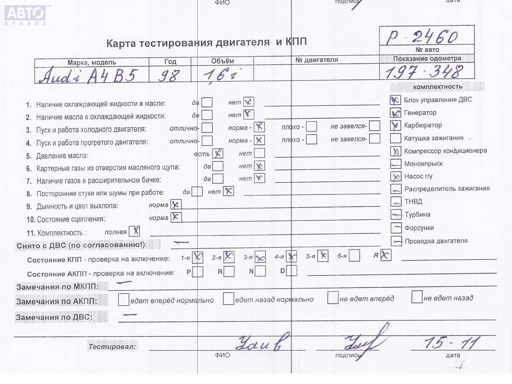 | Марка / Модель / Год: | Audi A4 B5 (1994-2001) 1998 |