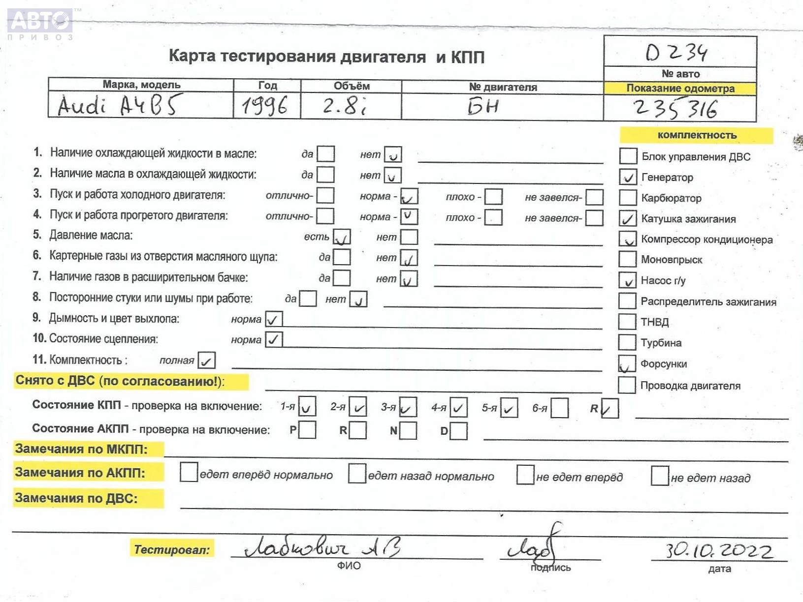 | Марка / Модель / Год: | Audi A4 B5 (1994-2001) 1996 |