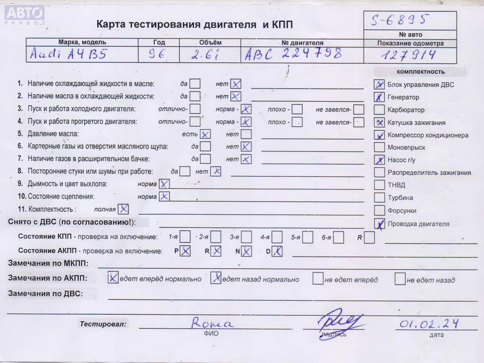 | Автомобиль / VIN: | S6895 WAUZZZ8DZVA087383 |