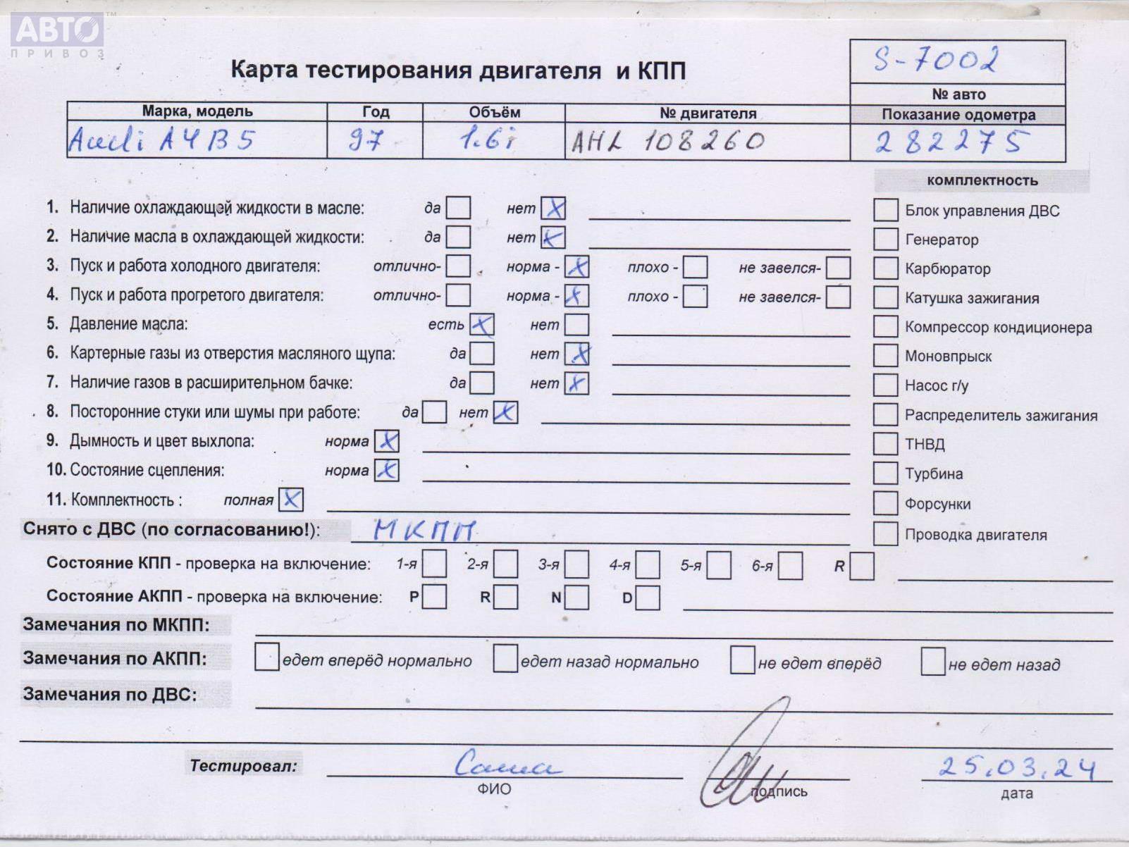 | Марка / Модель / Год: | Audi A4 B5 (1994-2001) 1997 |
