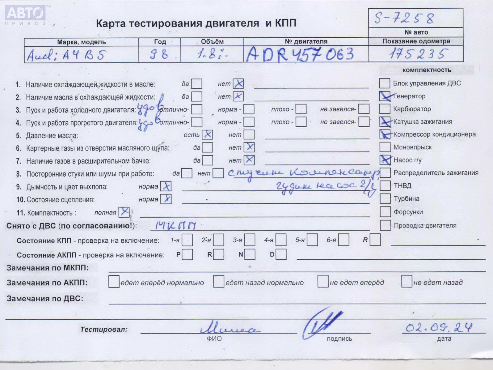 | Автомобиль / VIN: | S7258 WAUZZZ8DZWA268250 |