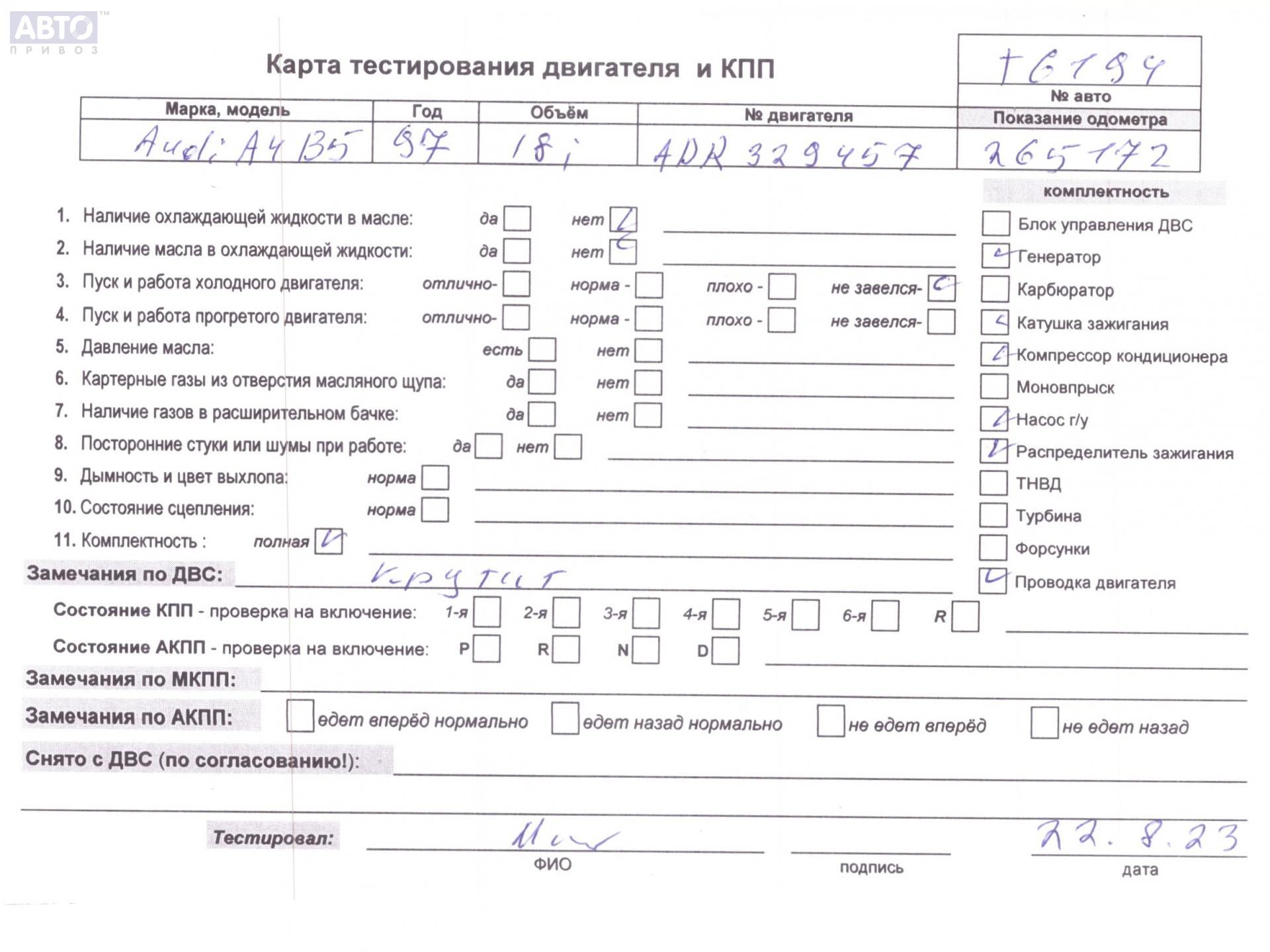 | Автомобиль / VIN: | T6194 WAUZZZ8DZWA022463 |