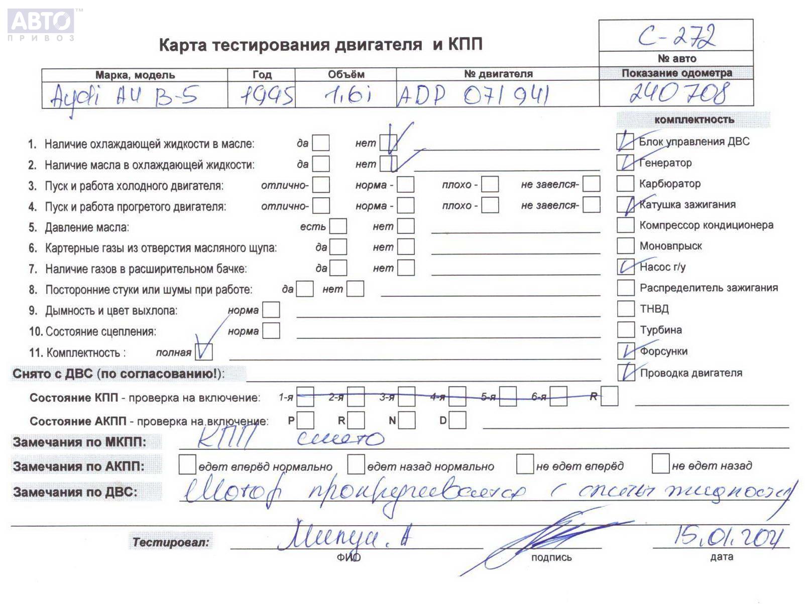 | Марка / Модель / Год: | Audi A4 B5 (1994-2001) 1995 |