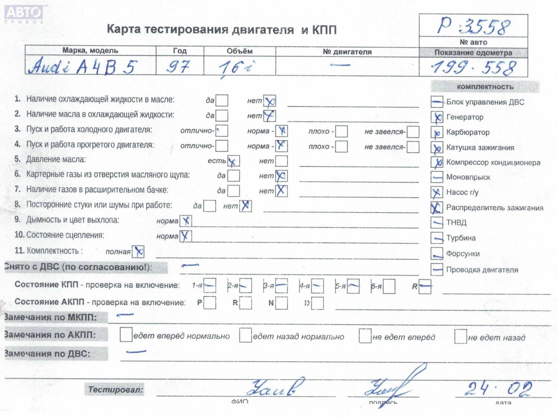 | Марка / Модель / Год: | Audi A4 B5 (1994-2001) 1997 |