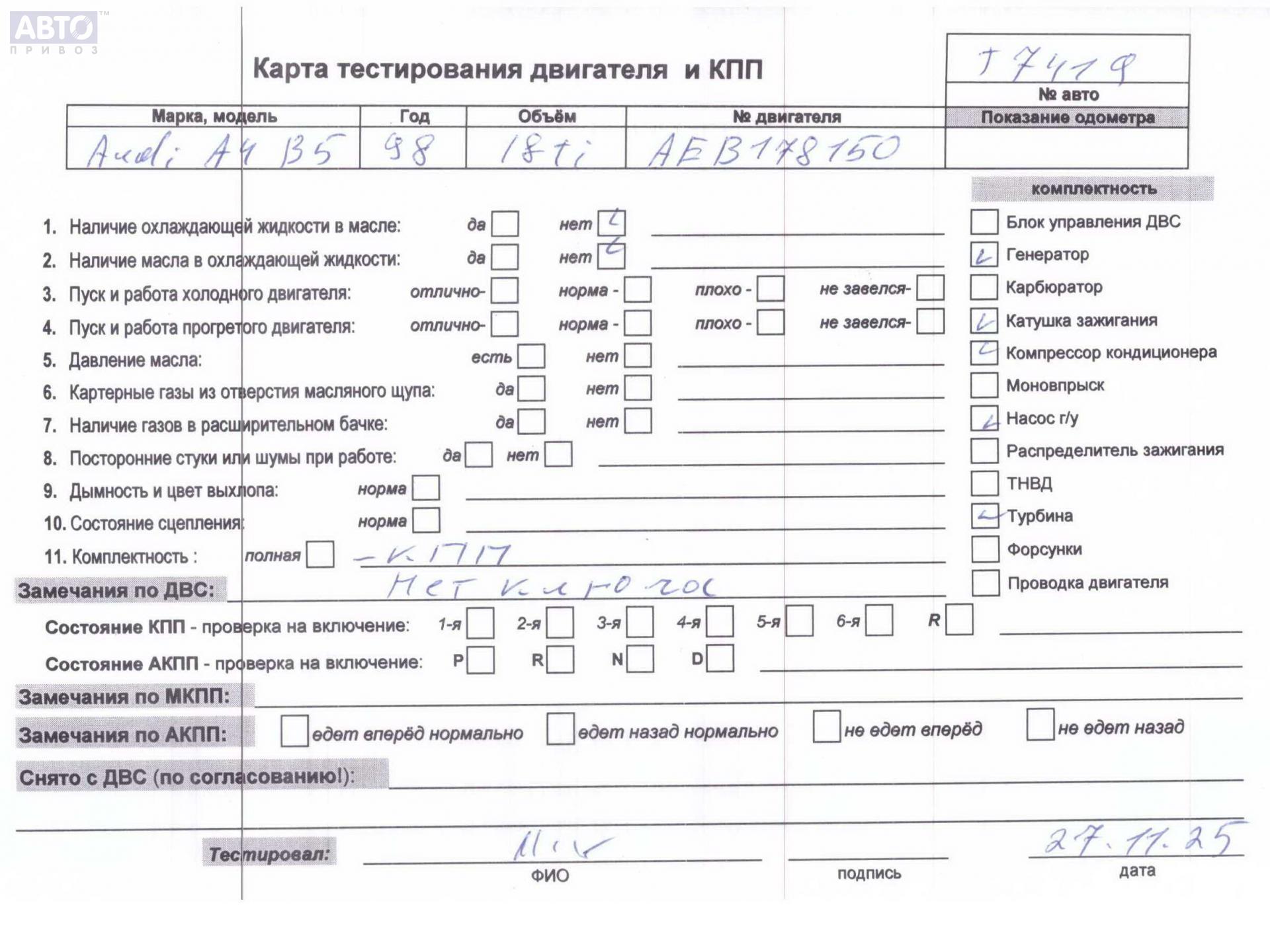 | Марка / Модель / Год: | Audi A4 B5 (1994-2001) 1997 |
