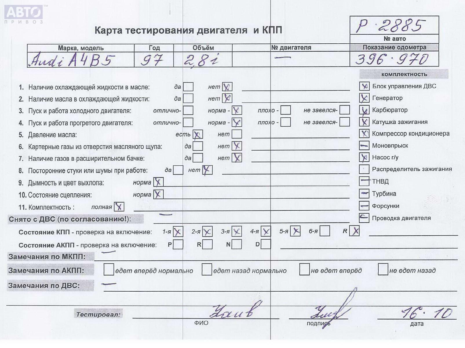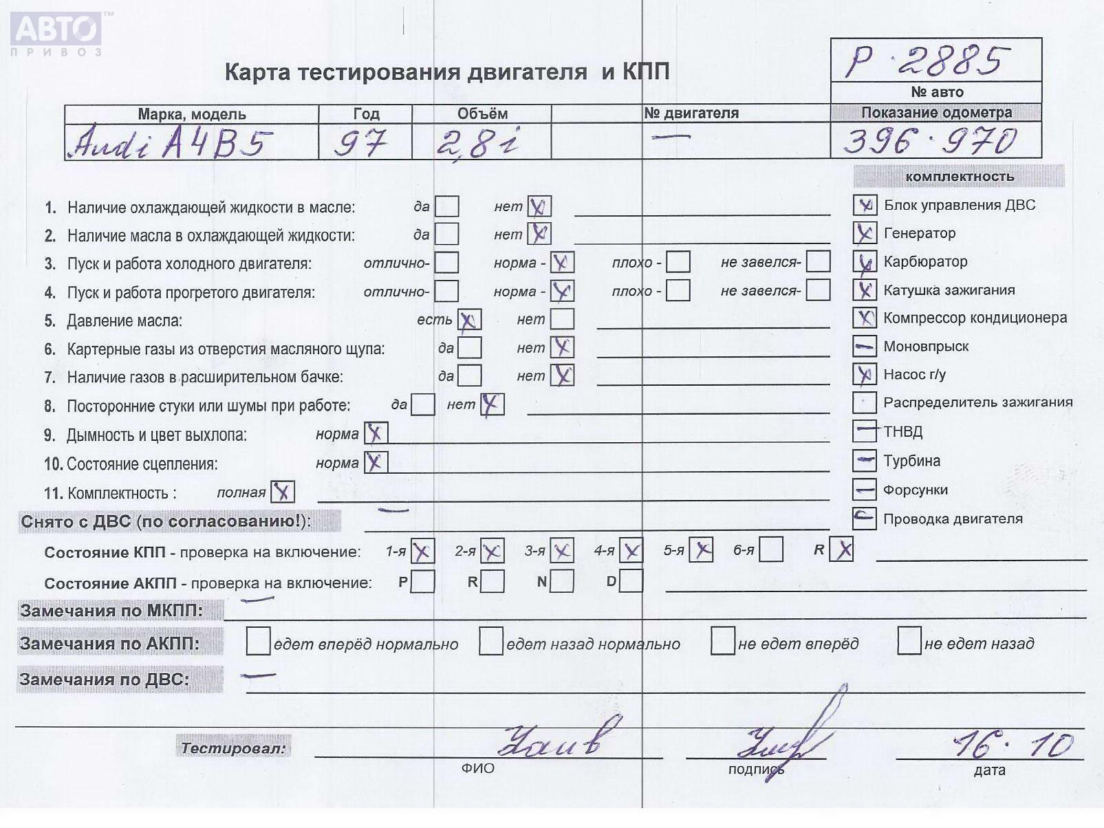 | Автомобиль / VIN: | P2885 WAUZZZ8DZVA200873 |