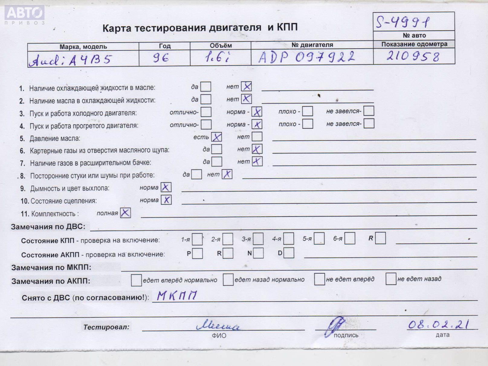 | Марка / Модель / Год: | Audi A4 B5 (1994-2001) 1996 |