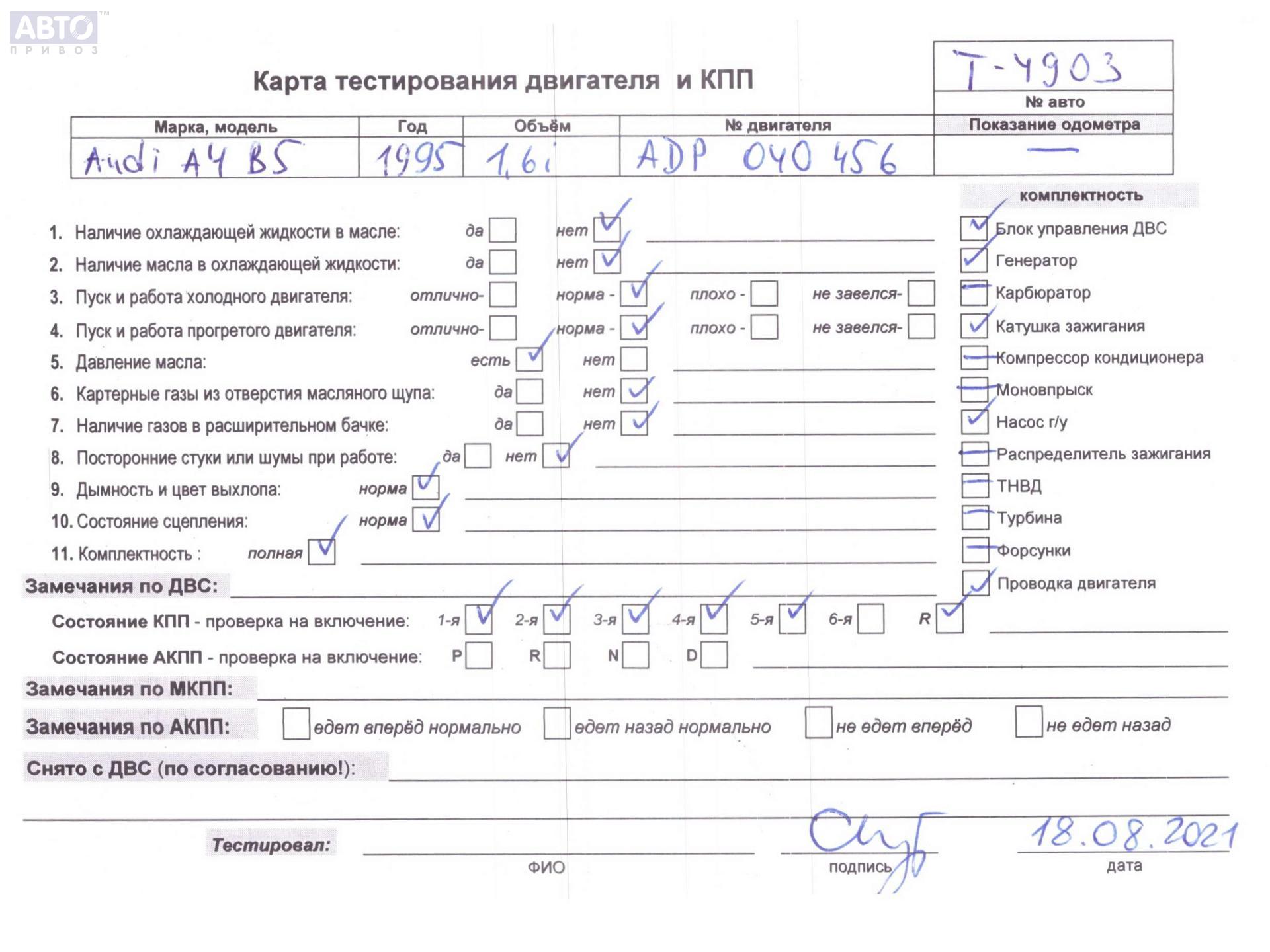| Марка / Модель / Год: | Audi A4 B5 (1994-2001) 1995 |