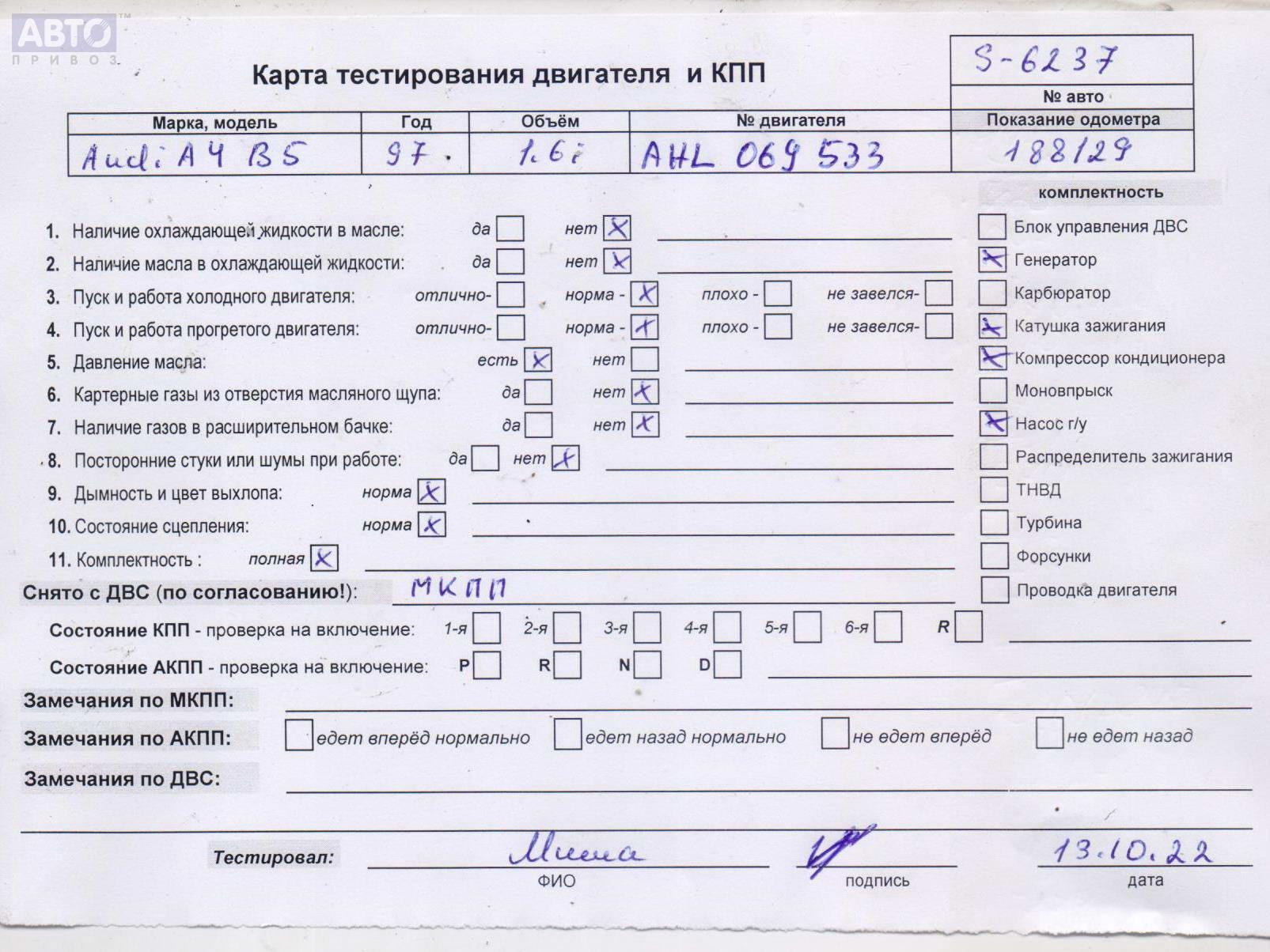 | Марка / Модель / Год: | Audi A4 B5 (1994-2001) 1997 |