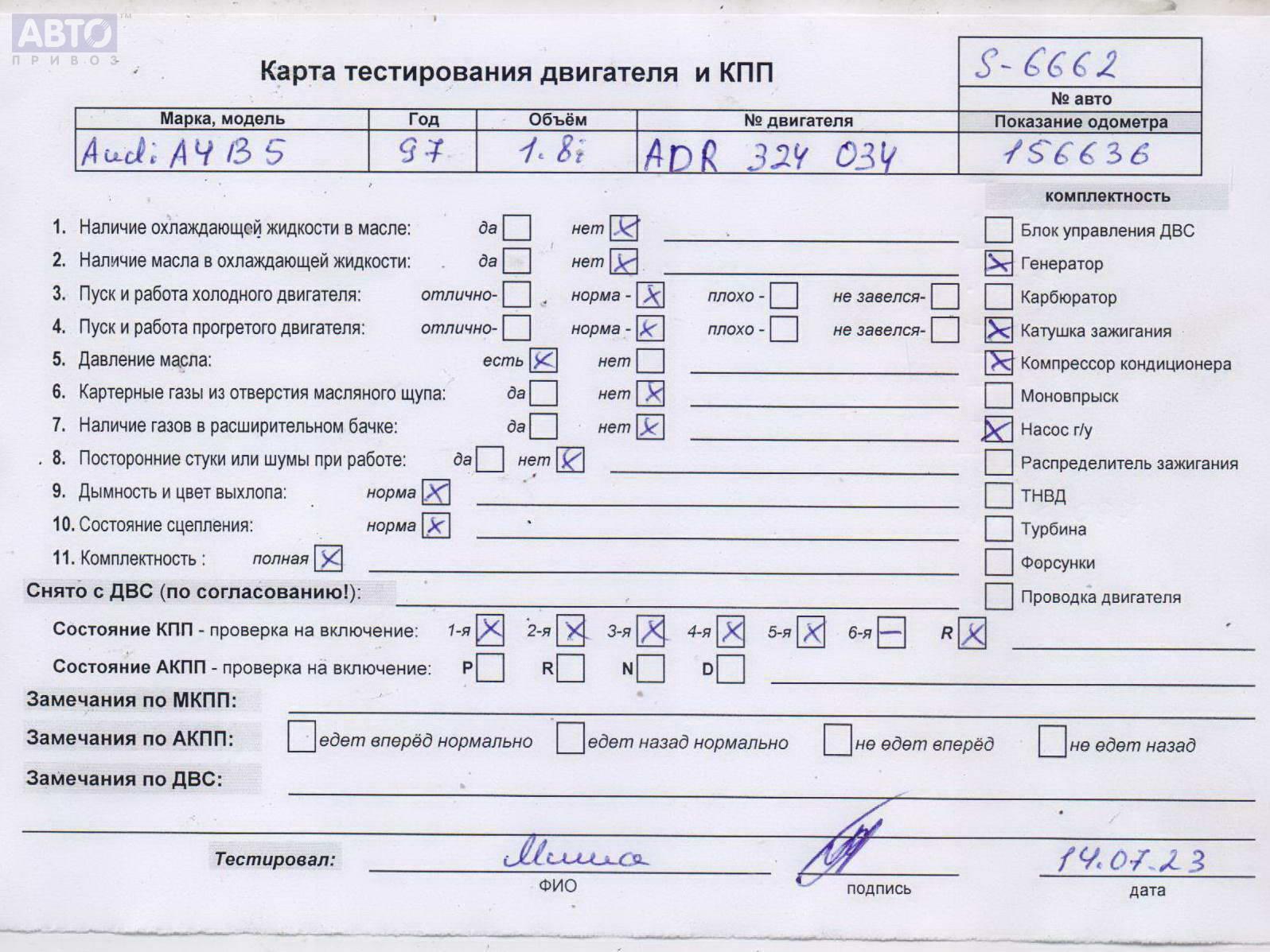 | Марка / Модель / Год: | Audi A4 B5 (1994-2001) 1997 |